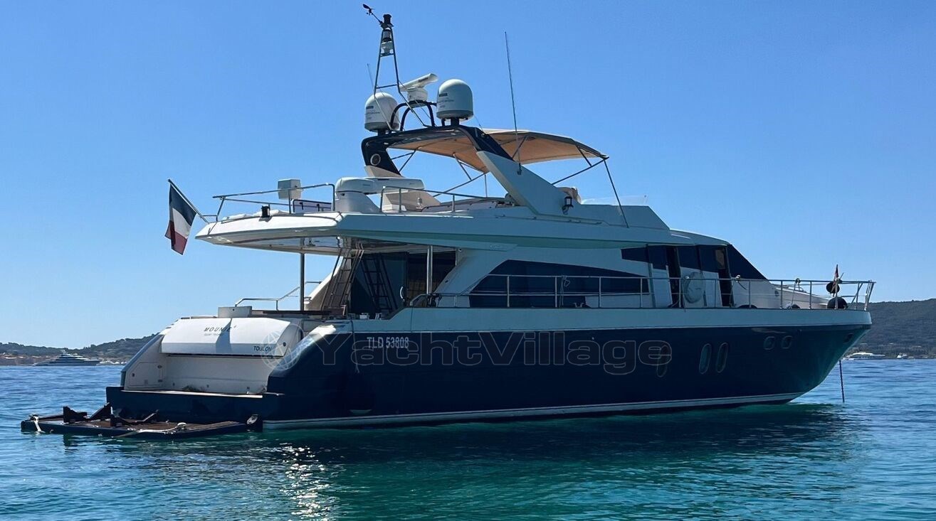 MOUNIE IV is a superb Guy Couach 2200 Fly motor yacht, built in 2007 by the renowned French shipyard Guy Couach, widely recognized for its expertise in constructing fast, robust, and elegant yachts. This 21.85-metre yacht perfectly combines performance, comfort, and ease of handling, making her an ideal choice for cruising in the Mediterranean.
