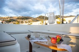 Con 11,55 metros de eslora y 6,53 metros de ancho, esta embarcación ofrece un interior espacioso y práctico, así como espacios exteriores cómodos para disfrutar del sol y el mar.