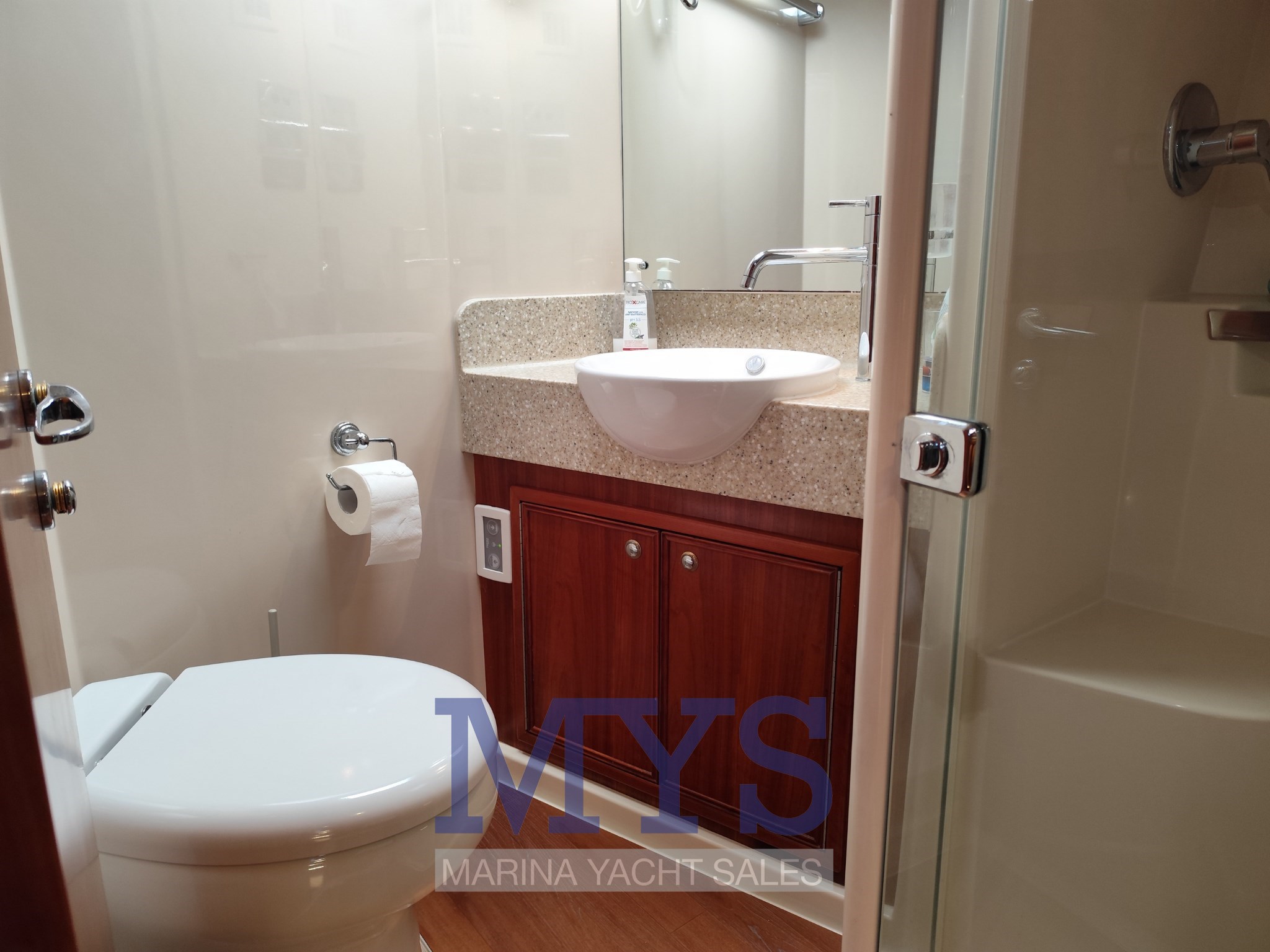 1 Baño con lavabo, ducha e inodoro marino eléctrico