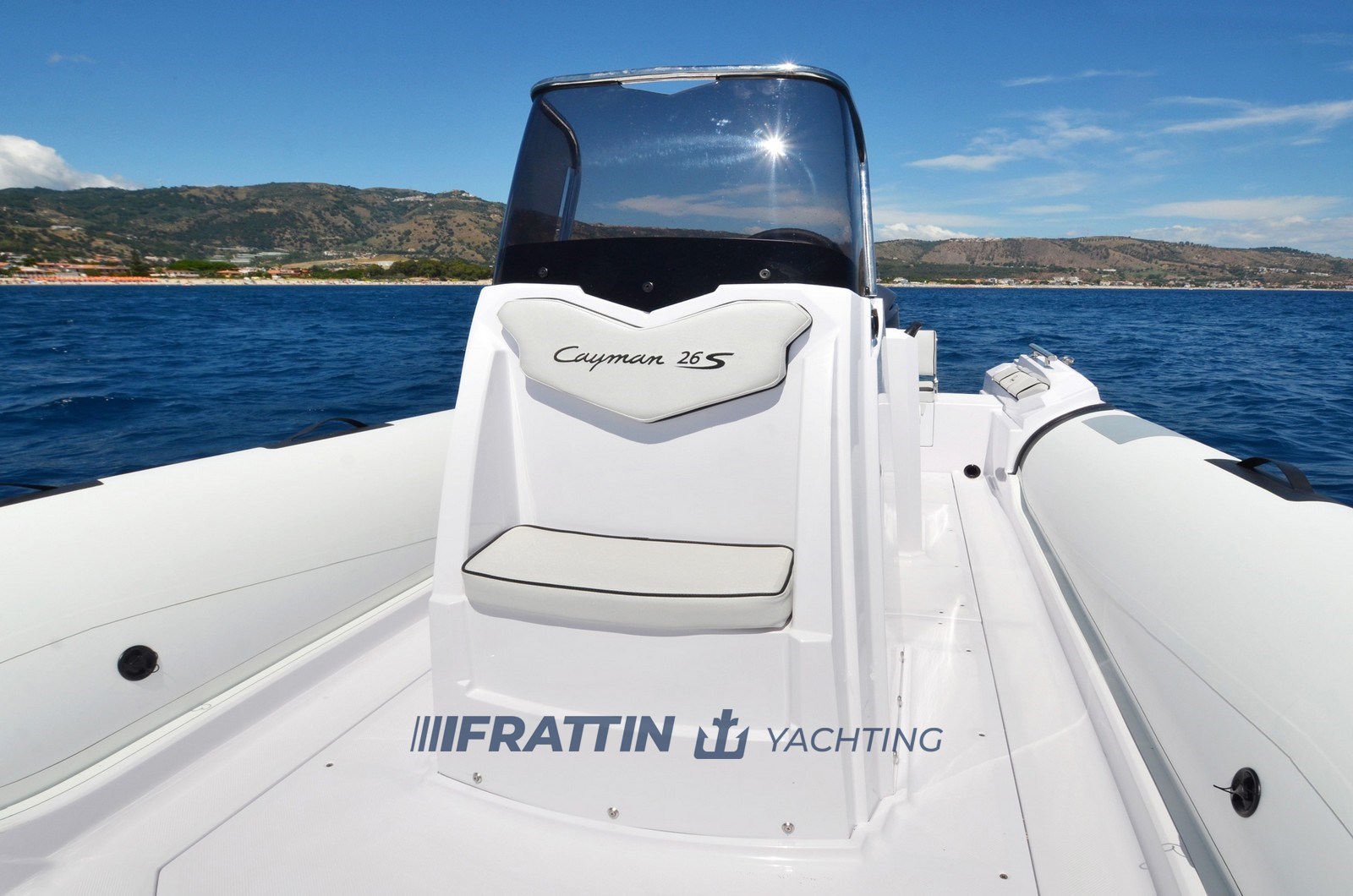 El Cayman 26 Sport alberga una consola compacta que ofrece asientos orientados hacia adelante y un panel de instrumentos bien articulado. Esta costilla consta de un parabrisas resistente, un pasamanos perimetral, un asiento que incorpora el mueble bar/parrilla y un sofá orientado hacia la popa.
