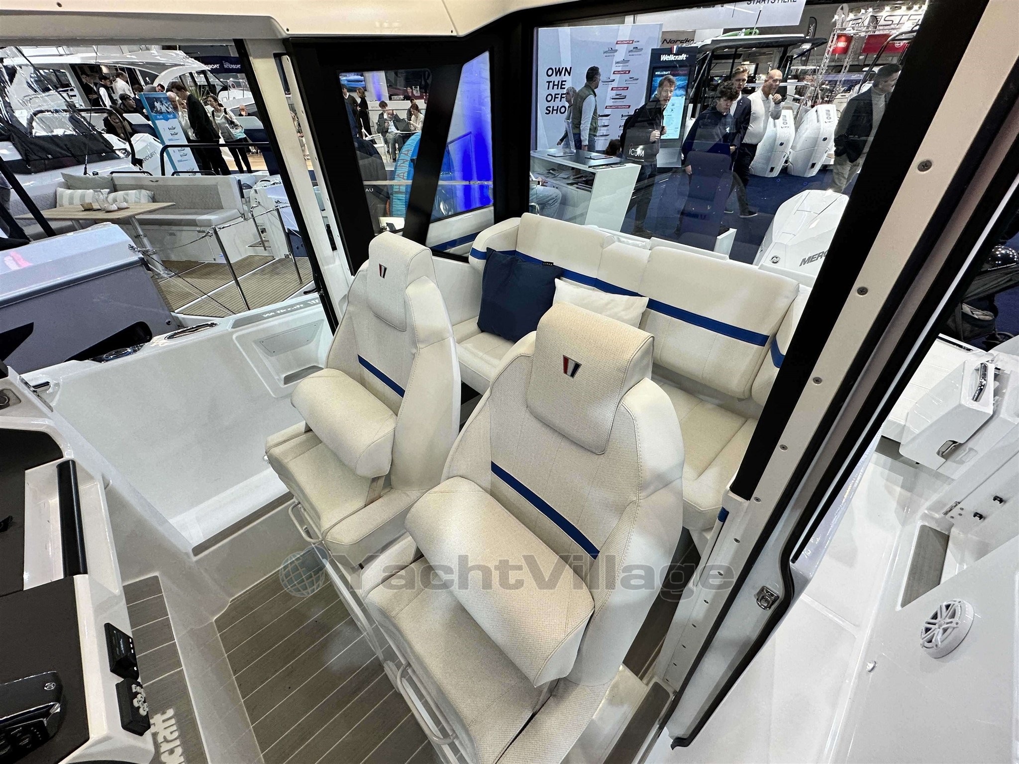 Wellcraft 28 explorer, coque grise, mercury 350 XXL V10 blanc, sellerie de cockpit Desert, version barracuda, finition premiere, pack cabine avant, pack eau douce, pack ancre, pack éléctronique premium Garmin, pack audio Fusion, 2 taquets centraux additionnel, housse de protection, table avant et coussin, propulseur d'étrave, projecteur de pont, paque de cuisson gaz 1 feu, refrigerateur 20l sous siège pilote, reservoir essence 530L, flaps electriques et toit ouvrant manuel !