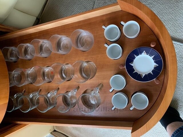 Ausstattung: Klimaanlage kühlen/heizen in jeder Kabine und im Salon, Satelliten TV ,Generator, 3x TV, 3x Kühlschrank, Yacht Controler Fernbedienung zum Anlegen des Bootes, Ankerwaschanlage, Matrosen Kabine nicht ausgebaut mit Waschmaschine.