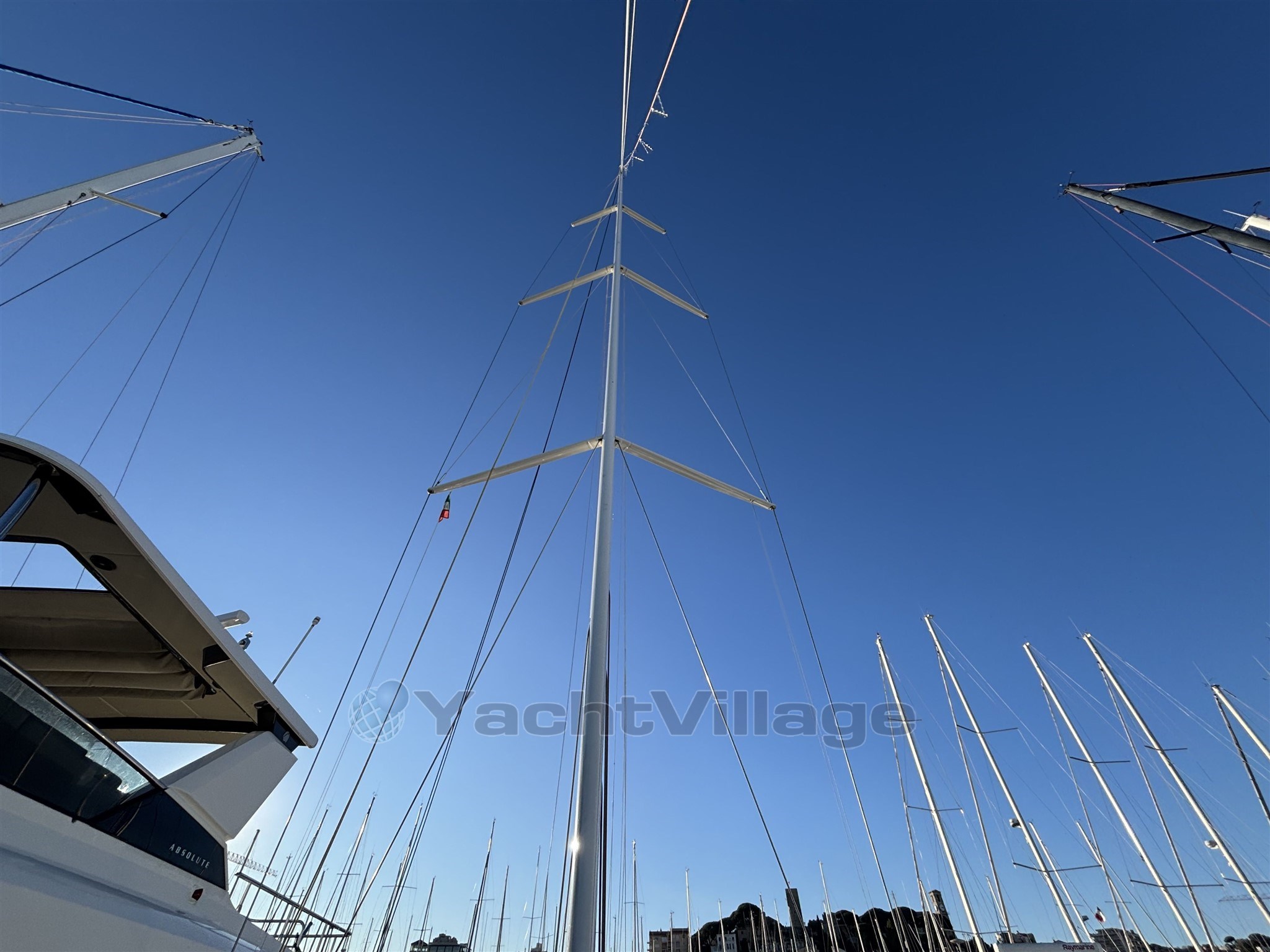 Le plan de voilure est particulièrement complet et orienté performance : grande voile de course, deux spis de régate (un très récent ~15 heures, un d’environ 1 an), code 0 et spi asymétrique. La grande voile de croisière est à prévoir, uniquement par manque de temps du propriétaire.
