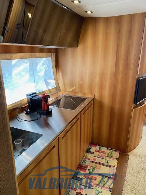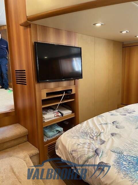 Techo duro con tres cabinas dobles y dos baños. Equipado con 3 Volvo Penta IPS 600. 2025: aterrizaje, revisión y pintura de los motores y del IPS, renovación total de todos los sistemas de la sala de máquinas (incluyendo recubrimiento fonoabsorbente).