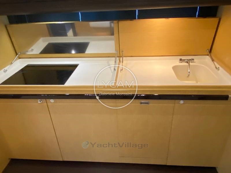 Bajo cubierta: comedor con cocina equipada con nevera, congelador, lavavajillas, zona de comedor, camarote de propietario a mitad del barco con baño privado; camarote VIP delantero con baño privado; Camarote de invitados: 2 camas individuales con baño de día/noche; Camarote de marinero con baño.