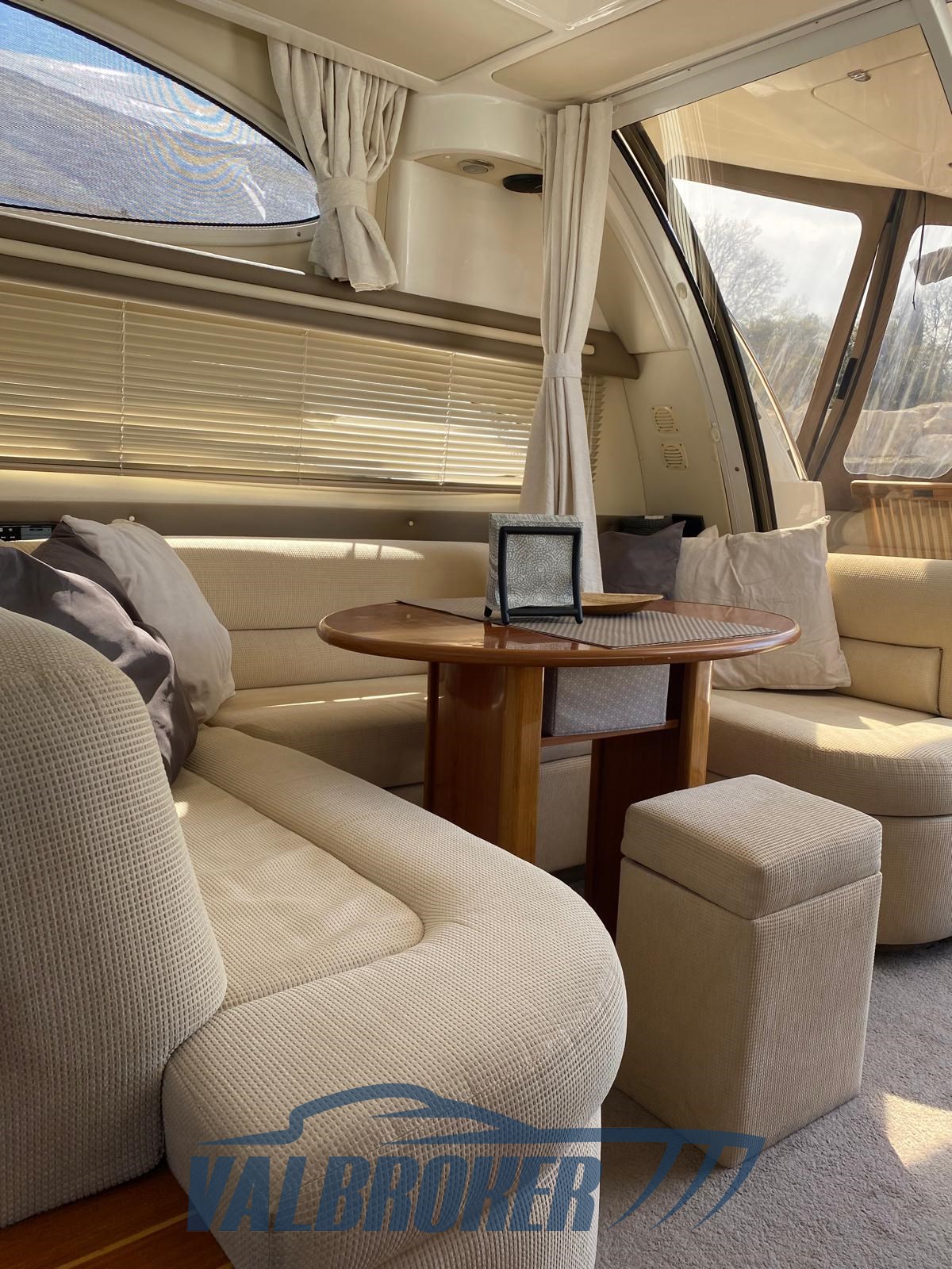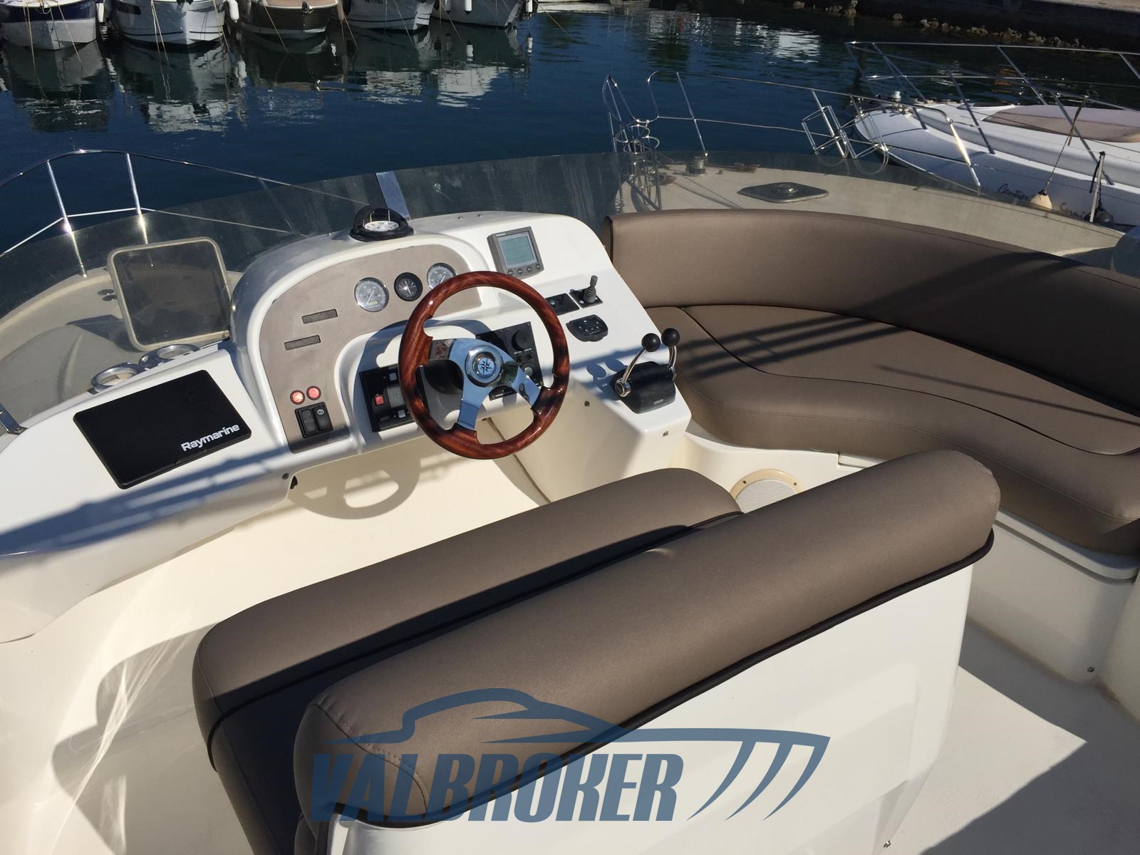 Un flybridge muy elegante del astillero británico, propulsado por 2 Volvo Penta KAMD 300 de 6 cilindros con línea de eje y 285 CV. Acabados de alto nivel, escalera muy cómoda para llegar al Fly, gran Fly con sistema patentado Sealine: el asiento del conductor gira y se puede instalar una mesa de teca al volante.