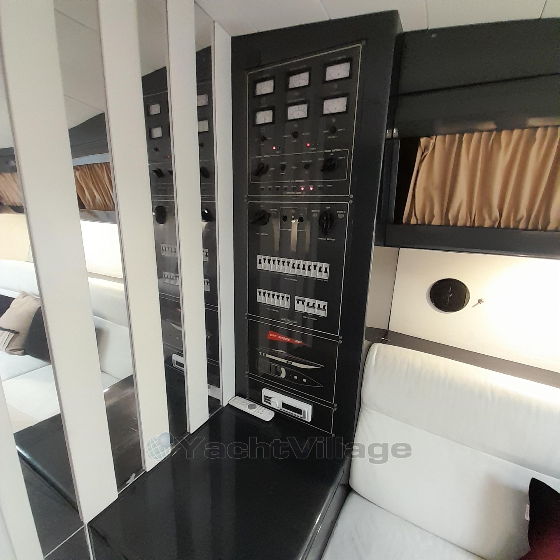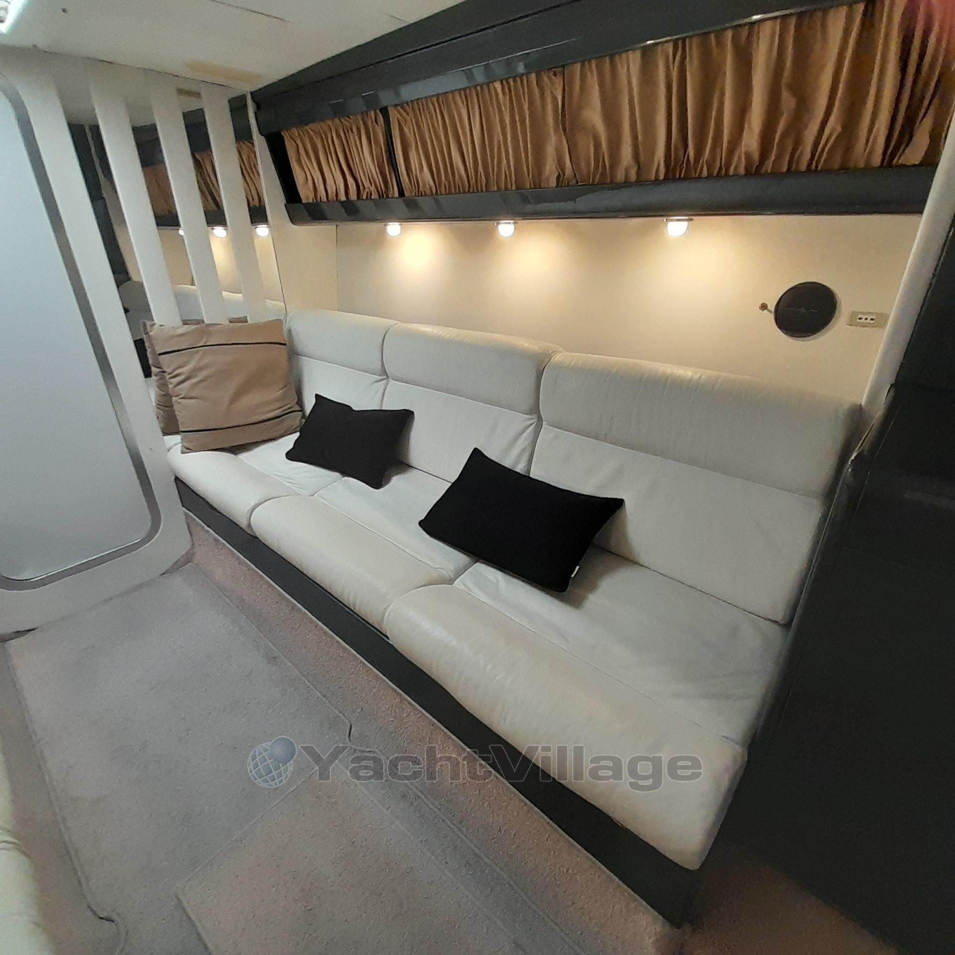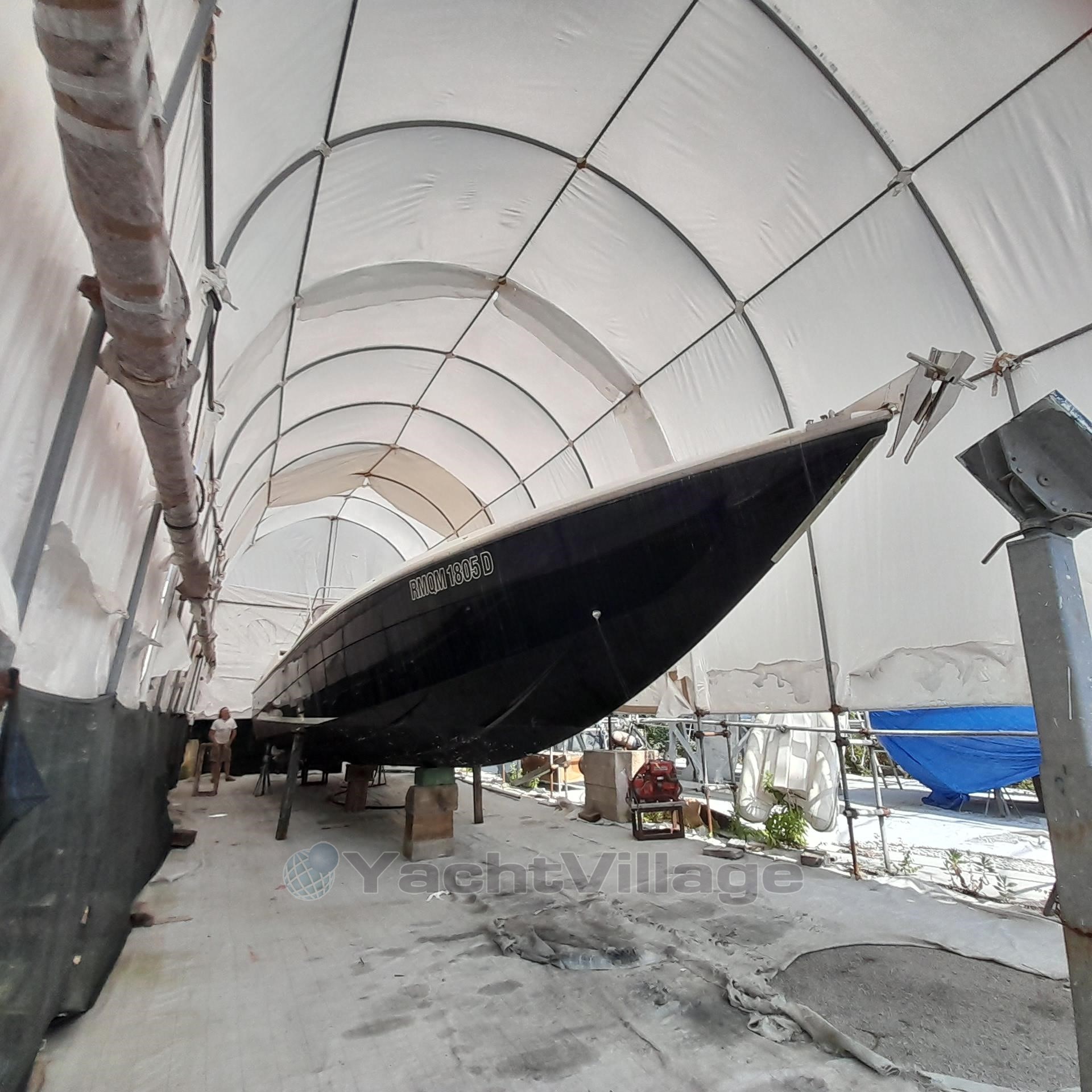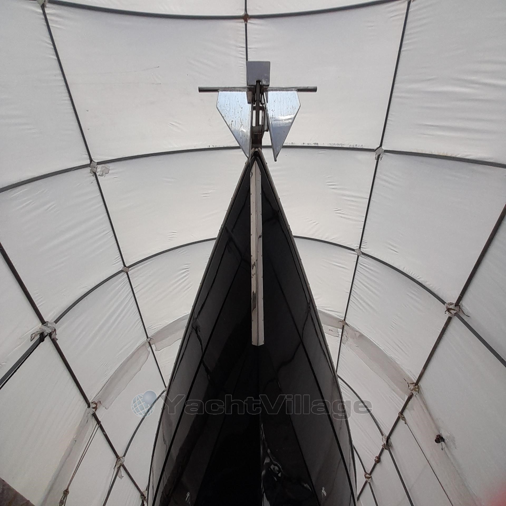 1989 Tecnomar Benetti 50 offshore yacht in covered storage, side view. Bow of 1989 Tecnomar Benetti 50 offshore yacht in storage tent. Bow view of 1989 Tecnomar Benetti 50 offshore yacht in a covered storage. Control panel of 1989 Tecnomar Benetti 50 offshore yacht with steering wheel and gauges. Luxurious interior of 1989 Tecnomar Benetti 50 offshore yacht with white seating and modern decor. Interior of 1989 Tecnomar Benetti 50 offshore yacht with white sofas and modern design. Interior of 1989 Tecnomar Benetti 50 offshore yacht with modern seating and control panels. Luxurious interior of 1989 Tecnomar Benetti 50 offshore yacht with white sofa and cushions. Luxurious interior of 1989 Tecnomar Benetti 50 offshore yacht with white leather seating. Control panel inside 1989 Tecnomar Benetti 50 offshore yacht, featuring switches and gauges. Luxurious cabin interior of 1989 Tecnomar Benetti 50 offshore yacht with black bedding. Interior cabin of 1989 Tecnomar Benetti 50 offshore yacht, featuring a skylight and cushions. Luxurious interior of 1989 Tecnomar Benetti 50 offshore yacht with modern seating and sleek design. Compact kitchen area in a 1989 Tecnomar Benetti 50 offshore yacht, featuring sleek black cabinetry. Luxury yacht bathroom with dual sinks, Tecnomar Benetti 50 Offshore, 1989 model. Luxury yacht bathroom with sleek metallic fixtures, Tecnomar Benetti 50 Offshore, 1989 model.