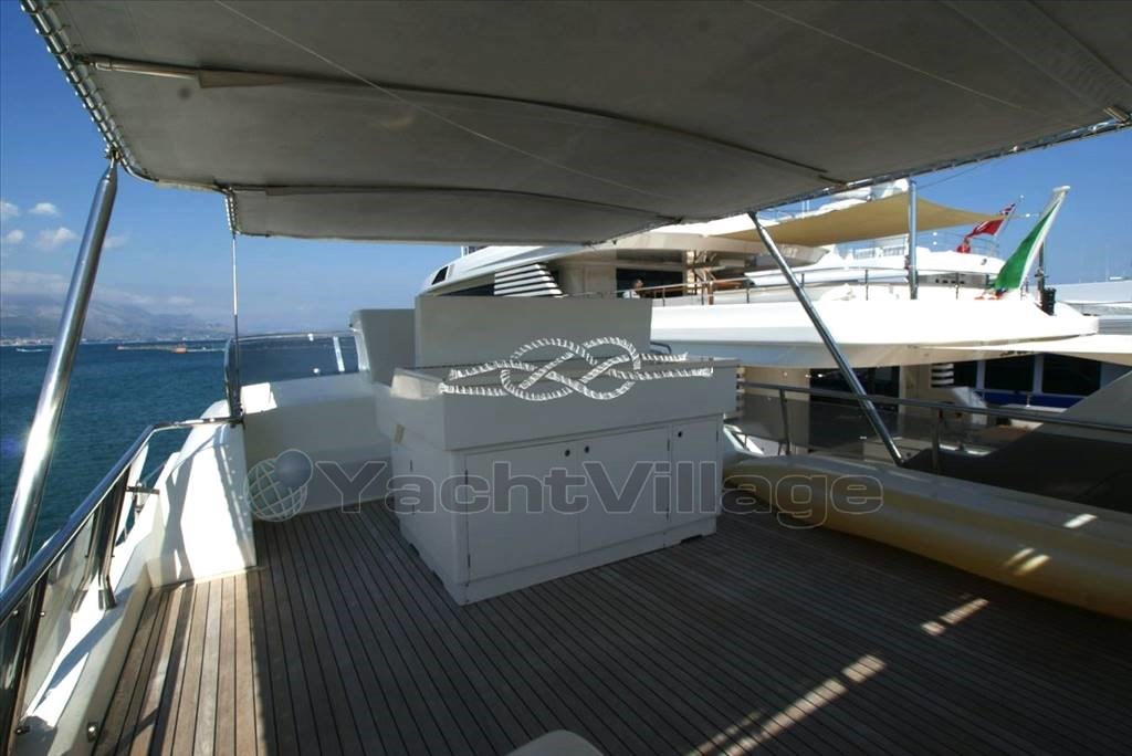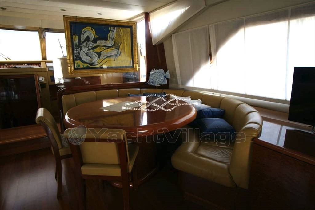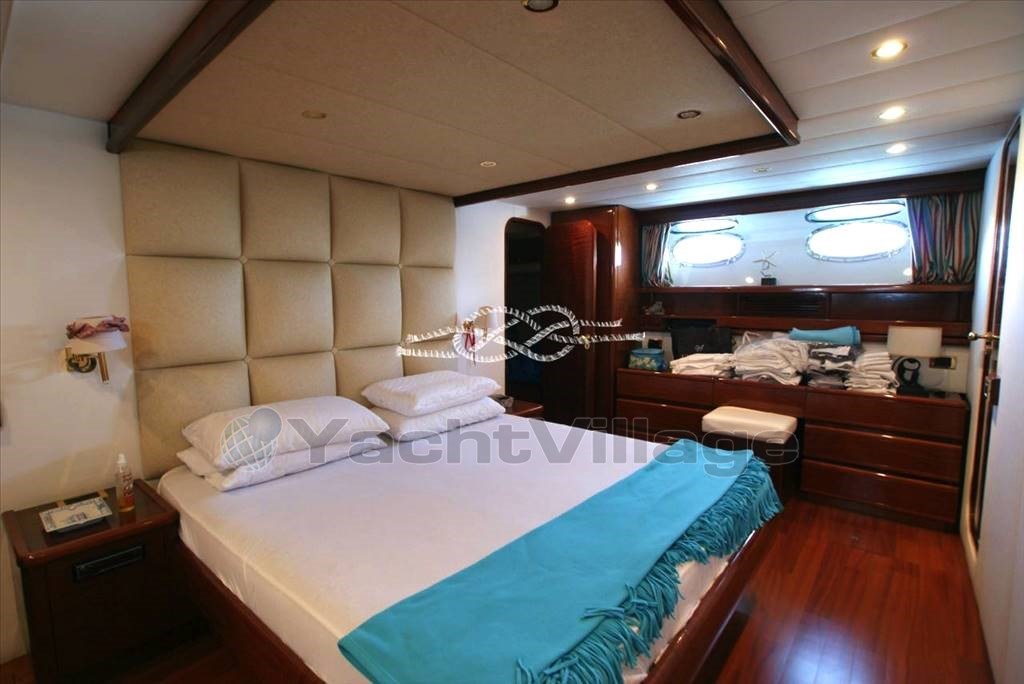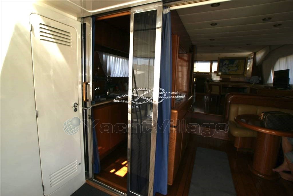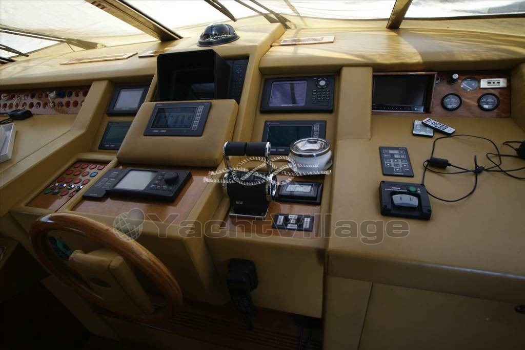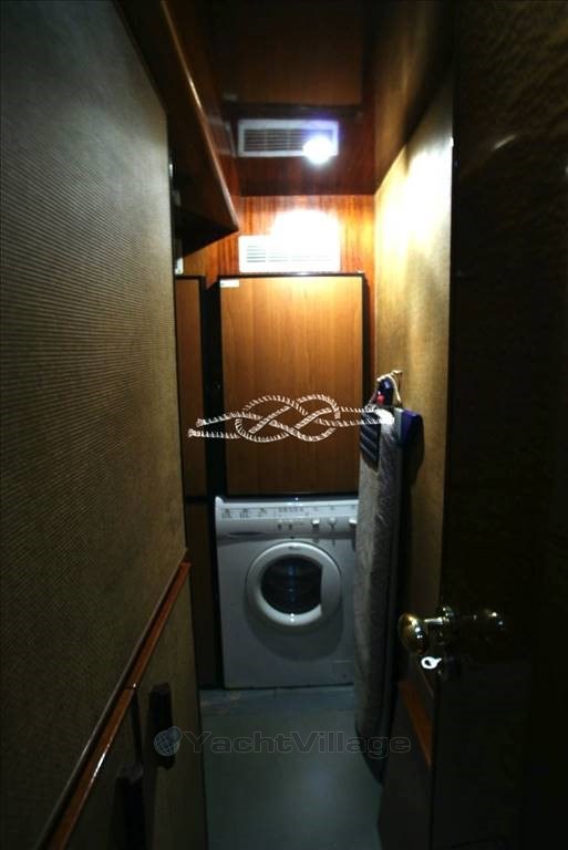 Tercera estación de control en popa - propulsor de proa Vetus - Panel electrónico Boening para comprobar depósitos de agua, combustible, agua negra y aguas grises - cámara de visión de la sala de máquinas - aire acondicionado - Generador Marinco - Kohler 17 kW y Onan 12 kW - tender con Suzuki 40 hp fueraborda - pasarela electrohidráulica Morsaverio - grúa mosca Morsaverio - lavadora - baño de agua dulce Tecma - 1 nevera y 2 congeladores en la sala de máquinas - cocina con Frigorífico, horno congelado y cocina de gas de 4 quemadores - armario con doble nevera/máquina de hielo, fregadero y cocina eléctrica de dos quemadores al vuelo - TV - antena Seatel SAT - decodificador SAT.