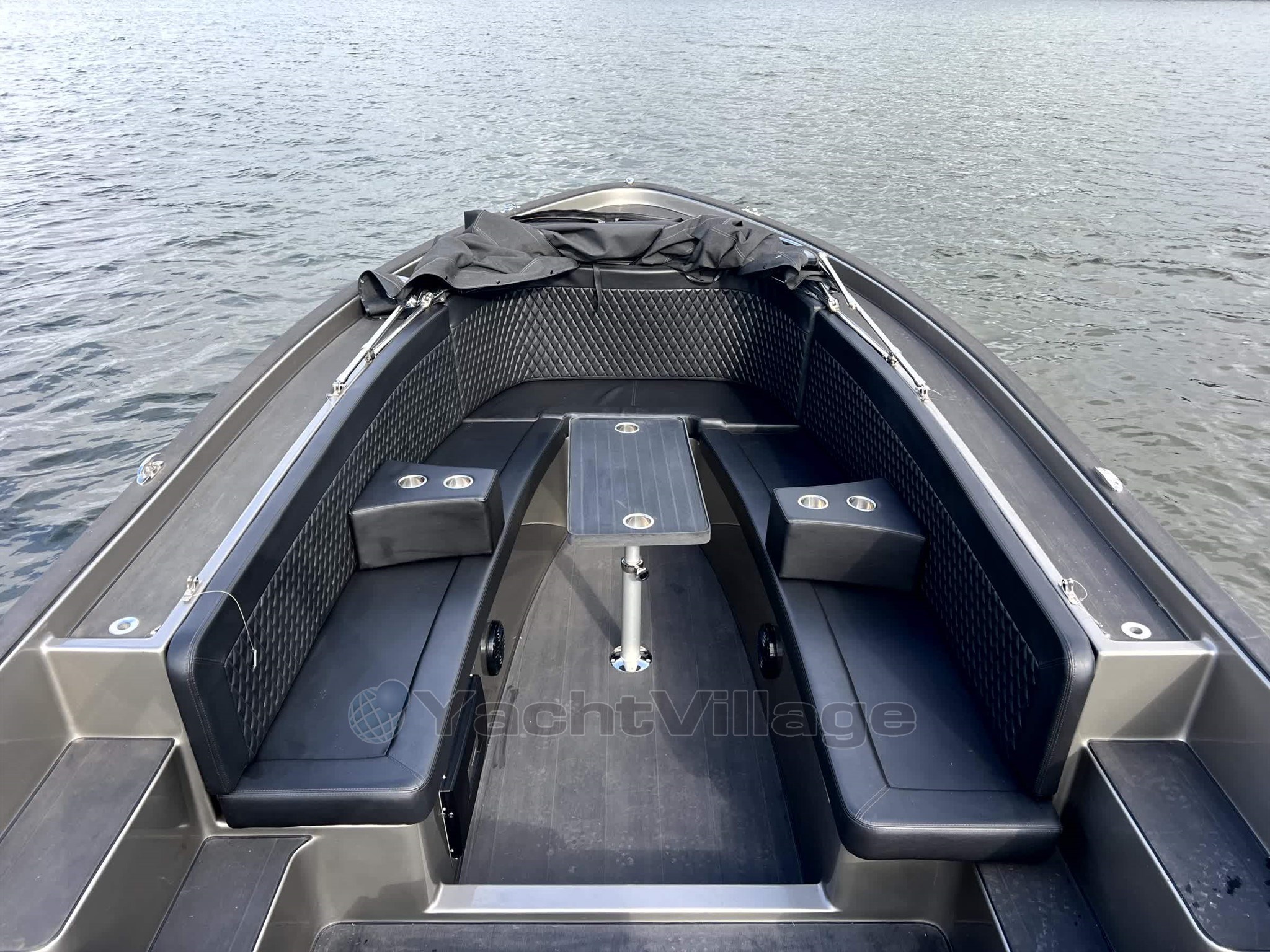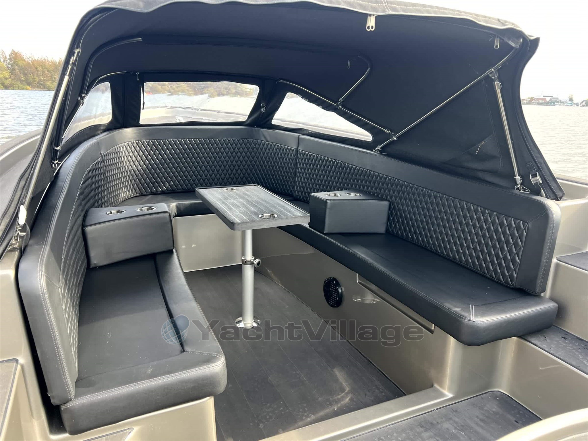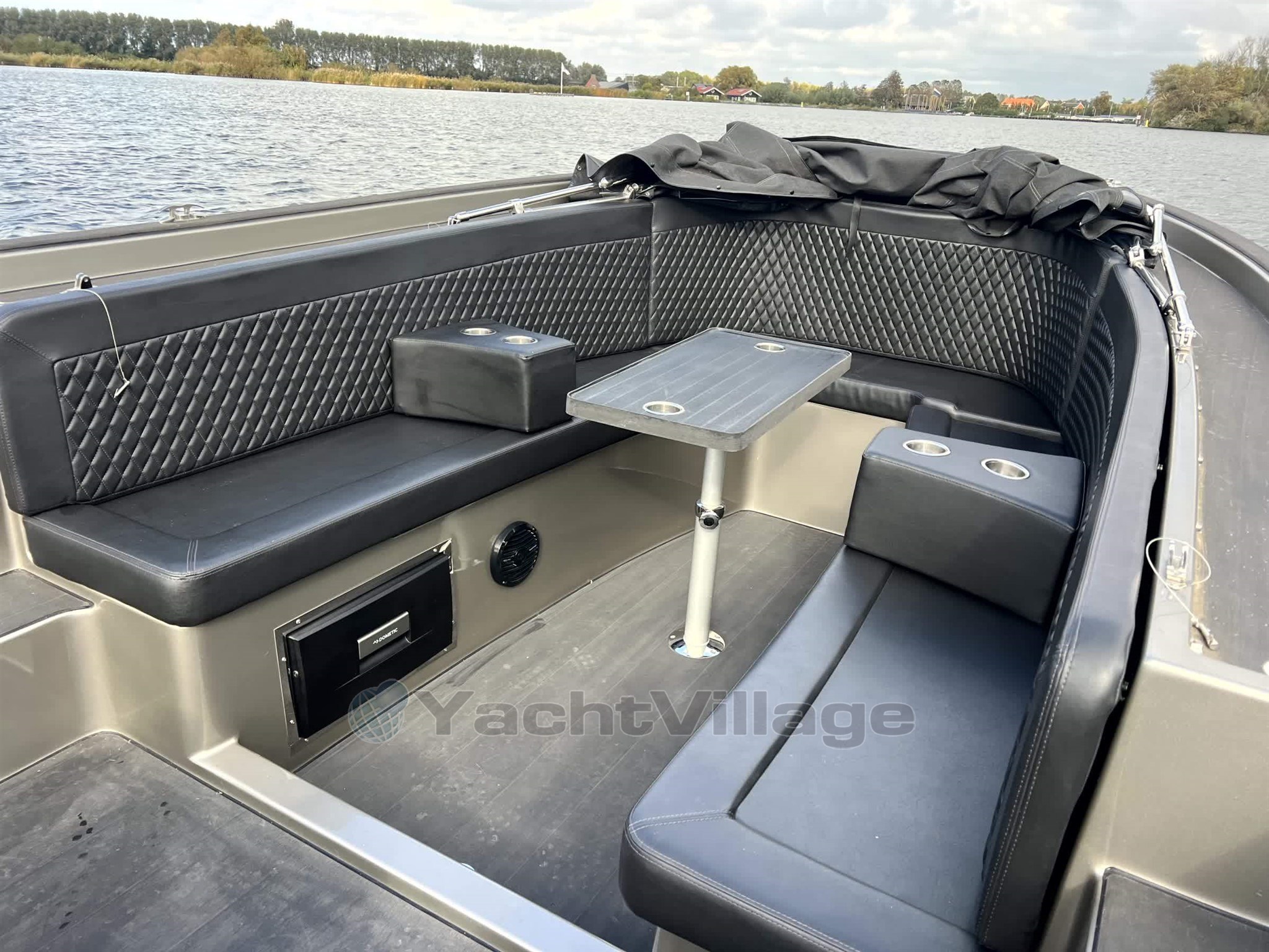 The appearance of the boat fits seamlessly with the sturdy character of the model with a completely black finish consisting of a sleek black deck a matching black sprayhood luxurious black upholstery and a tarpaulin that together provide a stylish and powerful whole The spacious interior with a possible sun deck offers plenty of comfort including a raised captain's seat for optimal visibility a fixed cockpit table for cozy moments on board and armrests with integrated cup holders that make it extra comfortable for you and your guests.