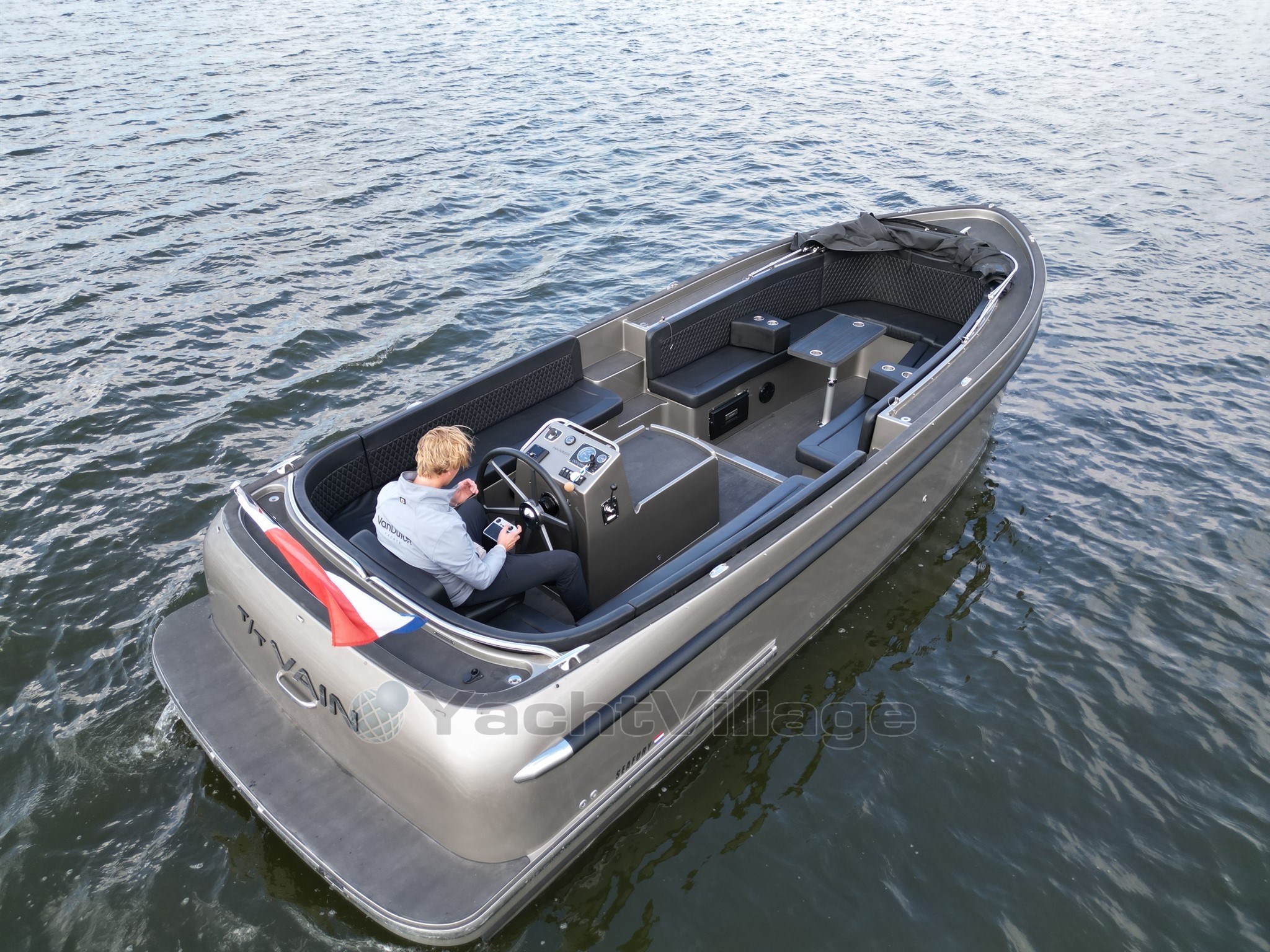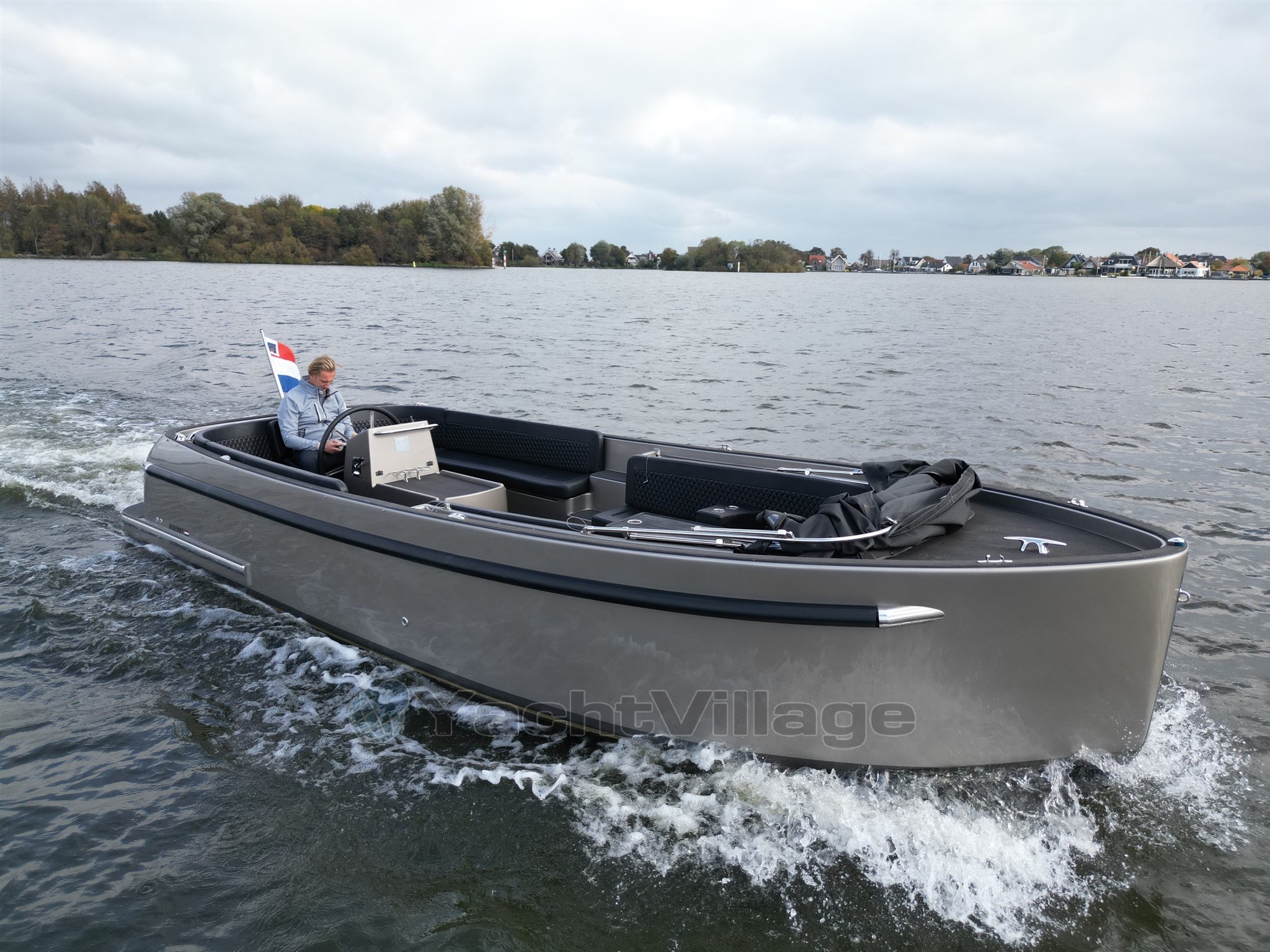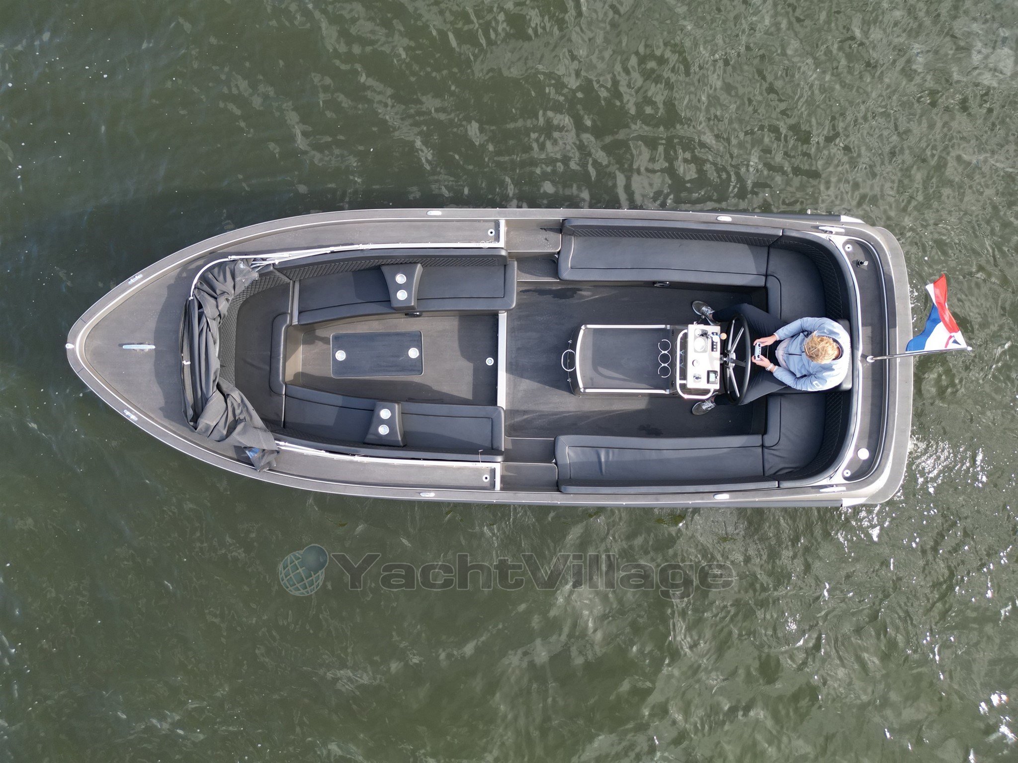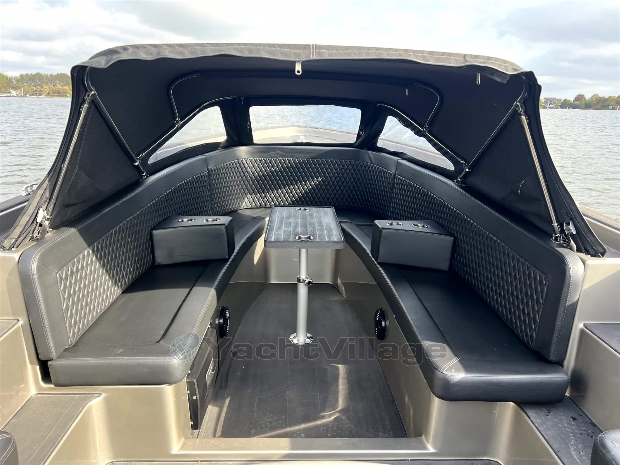 The appearance of the boat fits seamlessly with the sturdy character of the model with a completely black finish consisting of a sleek black deck a matching black sprayhood luxurious black upholstery and a tarpaulin that together provide a stylish and powerful whole The spacious interior with a possible sun deck offers plenty of comfort including a raised captain's seat for optimal visibility a fixed cockpit table for cozy moments on board and armrests with integrated cup holders that make it extra comfortable for you and your guests.
