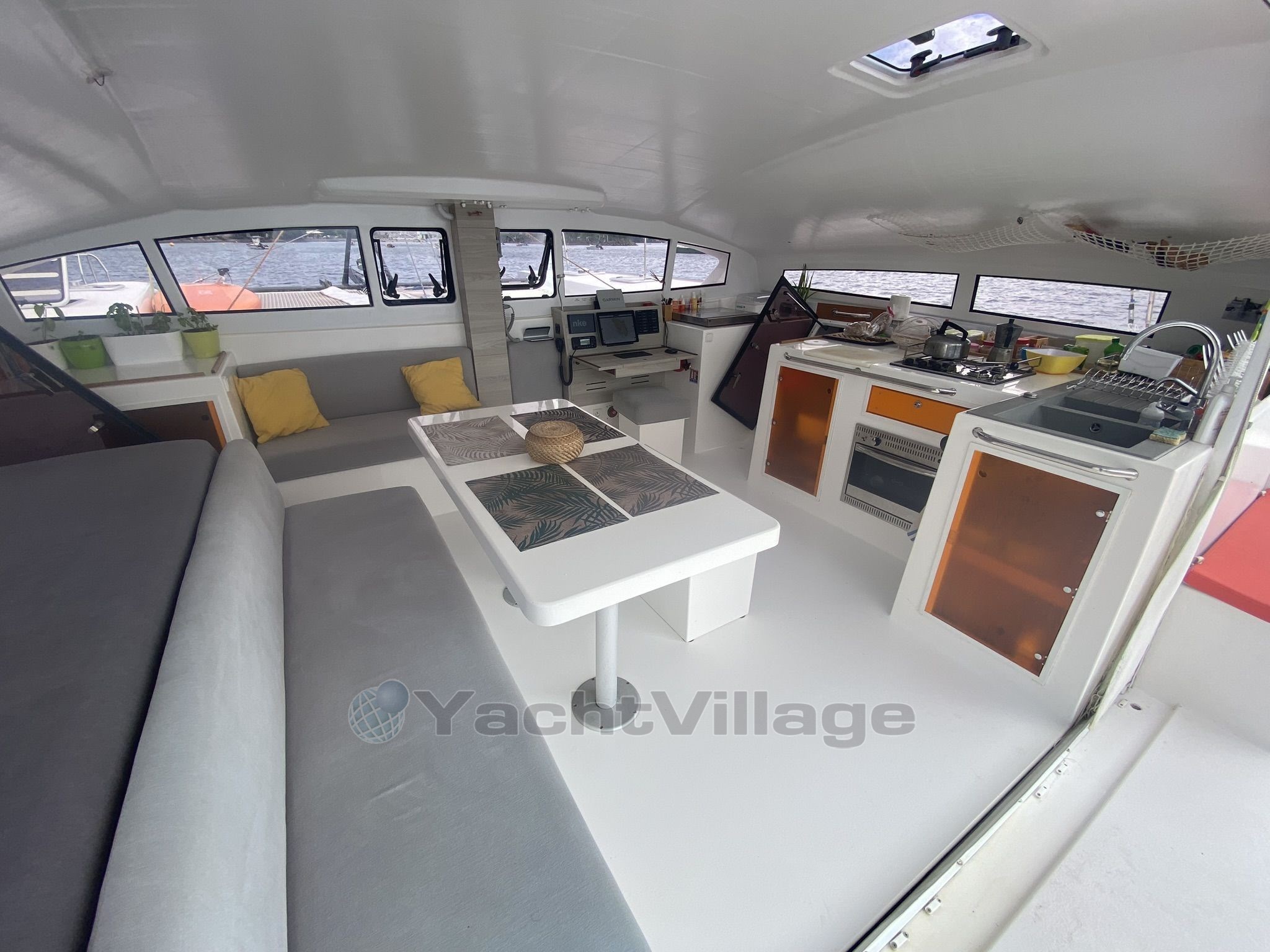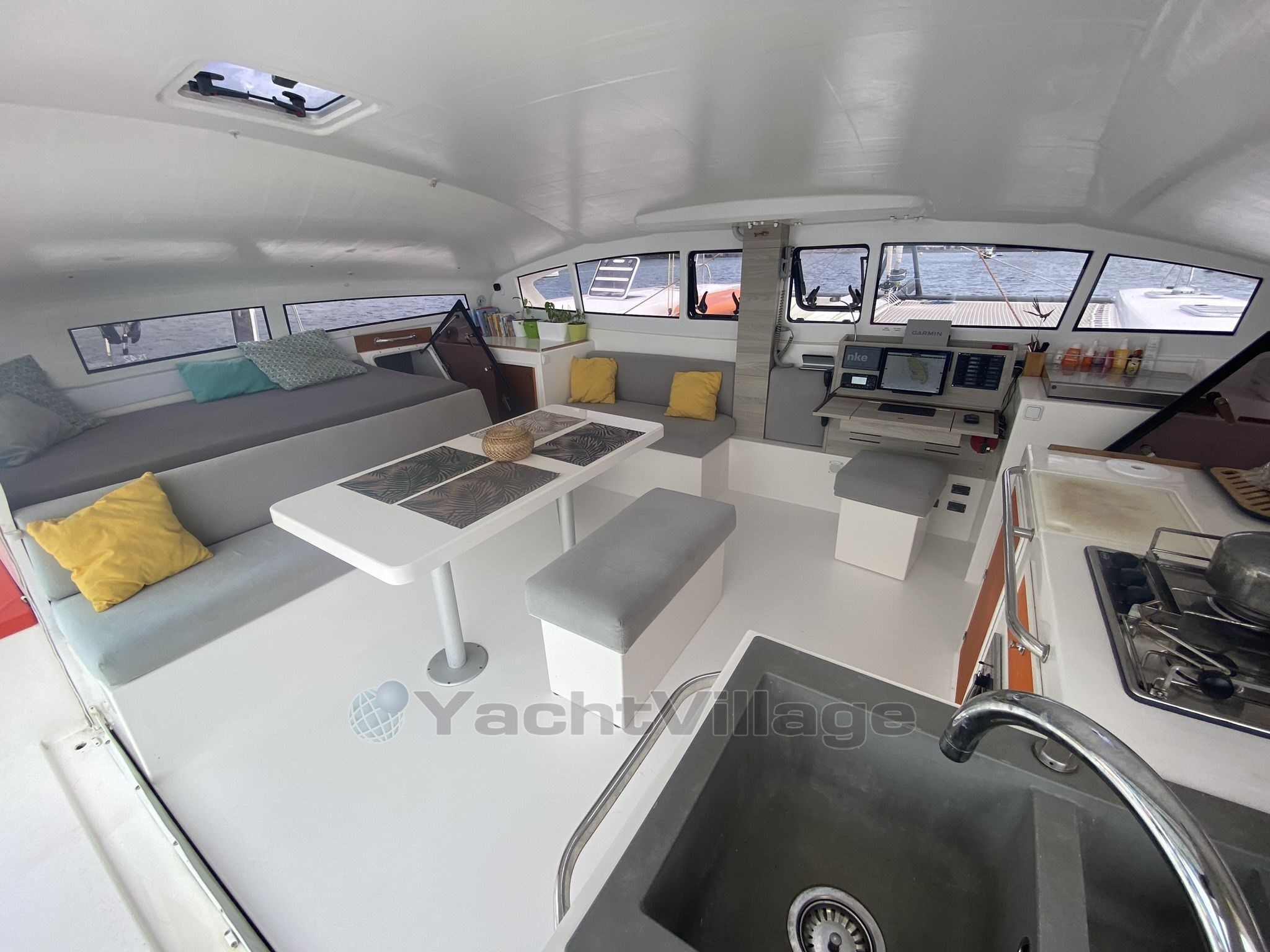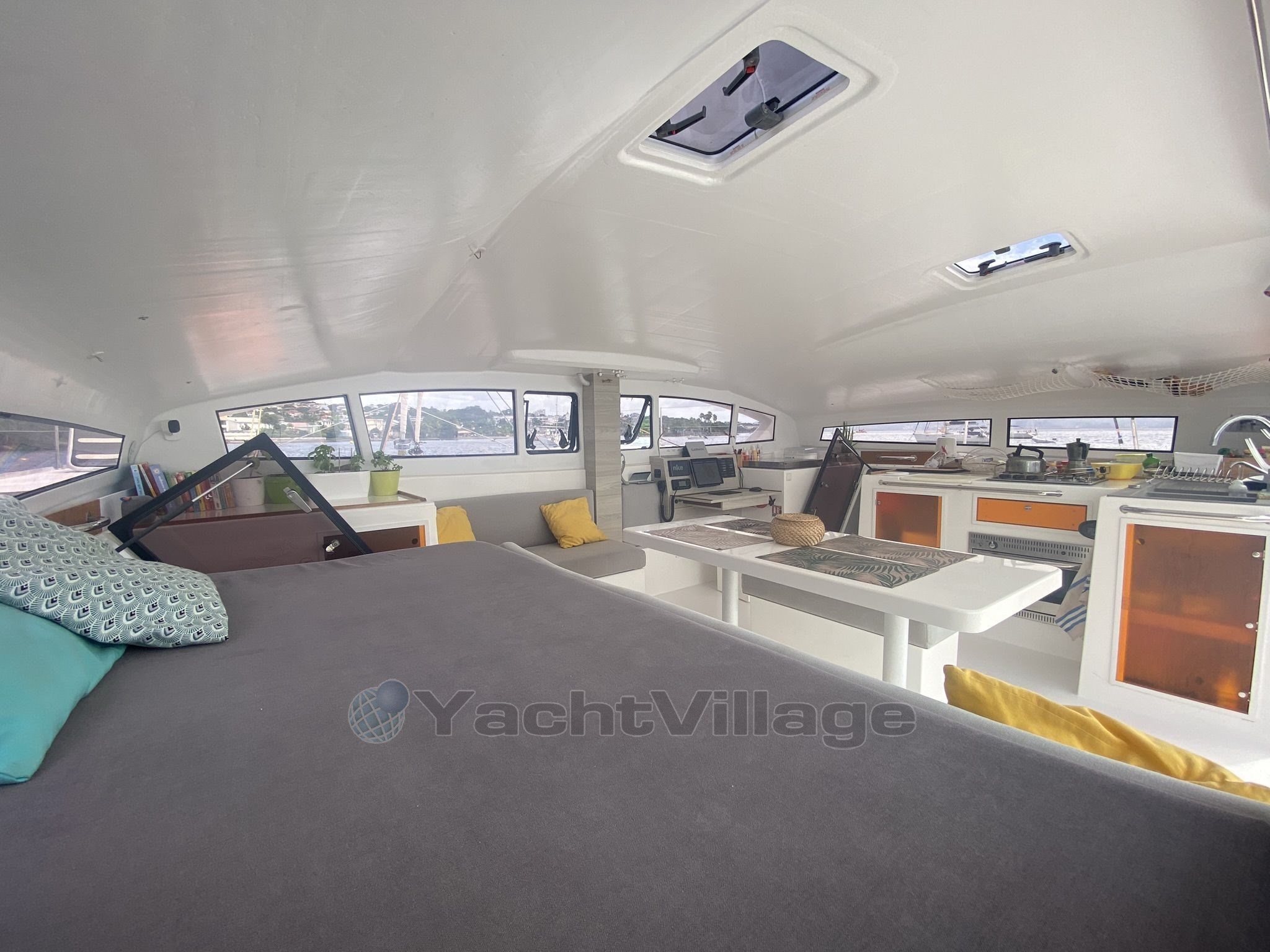 Malgré son orientation performance, ce catamaran n'en oublie pas le confort avec des aménagements soignés, des espaces de vie bien pensés et un équipement complet pour la navigation côtière comme hauturière.