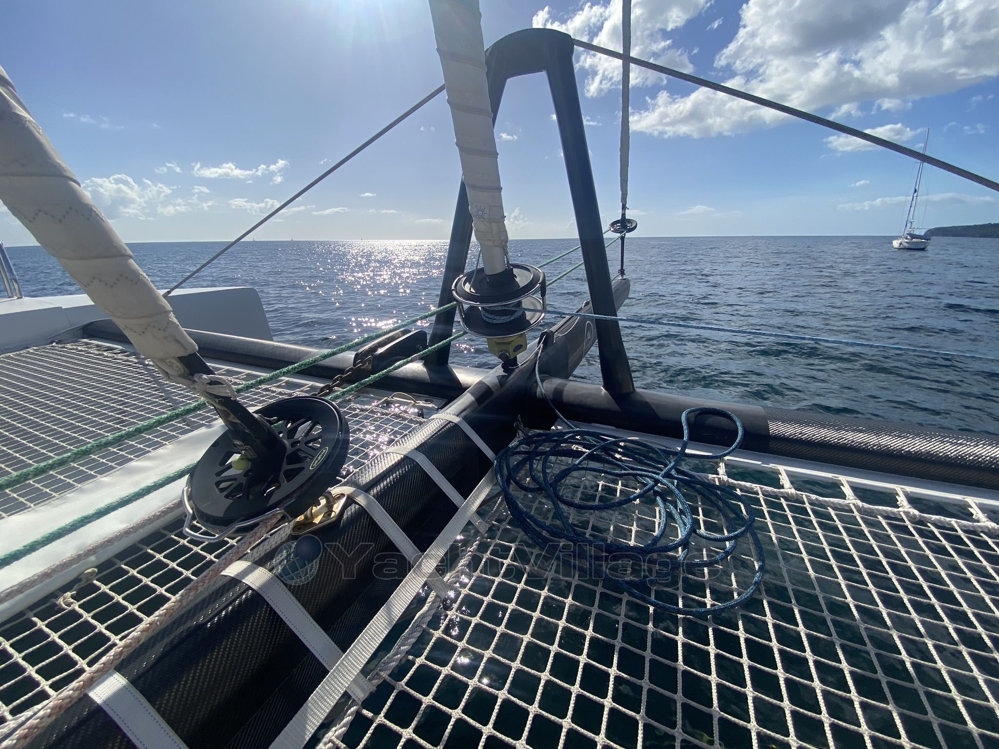 Équipé de deux moteurs Yanmar 3YM30 de 30 CV, ce catamaran est conçu pour offrir d'excellentes performances aussi bien en régate qu'en croisière. Sa construction légère en composite et son architecture moderne garantissent vitesse, maniabilité exceptionnelle et plaisir de navigation.