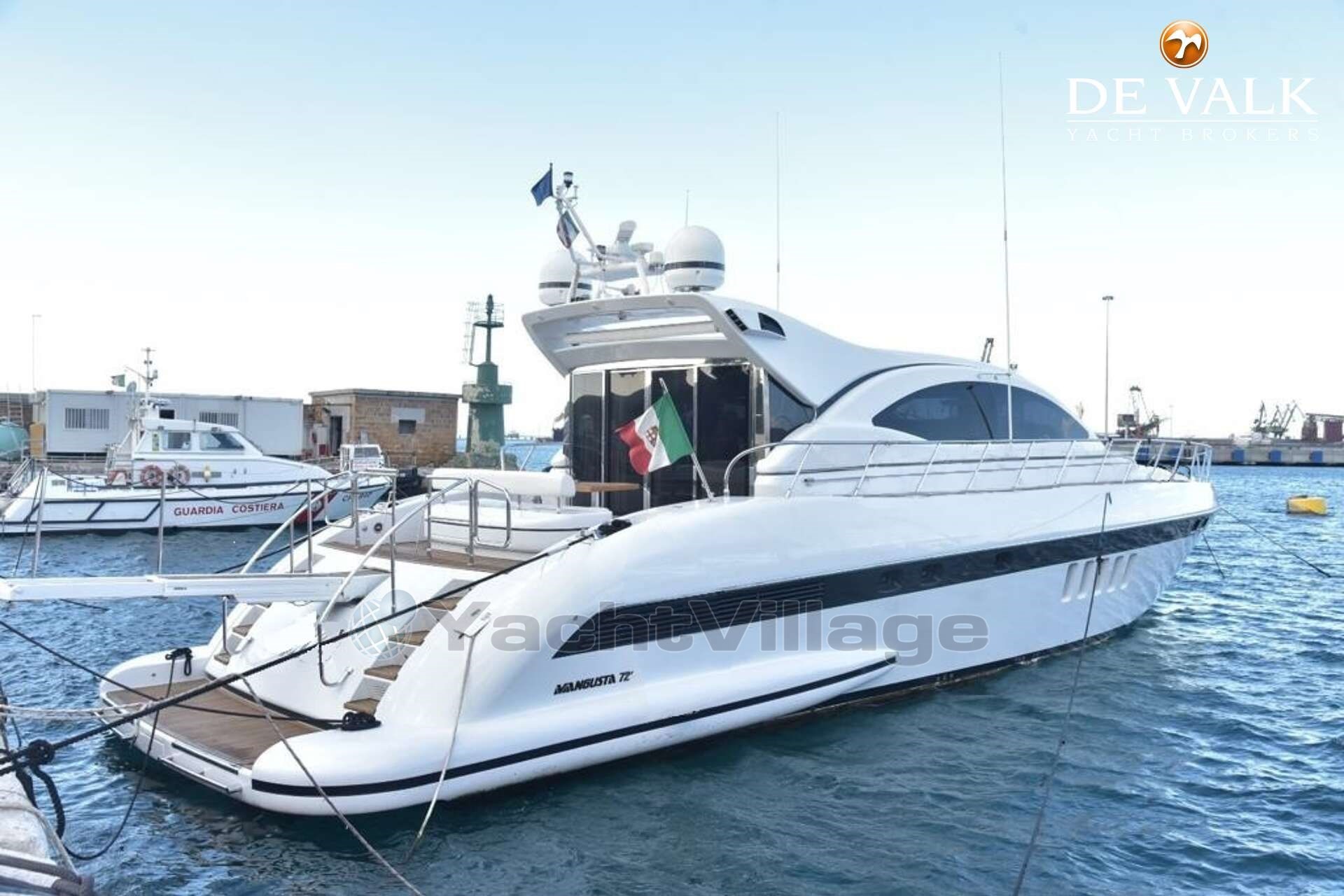 Wonderful Mangusta 72', from 2002, re-registered by the shipyard in 2012. Unique boat with steel door at the stern for entry into the dinette. A unique element because the others are true open. Livable boat in winter. Engines with 700 hours of last complete documented maintenance 2023, external refitting with LED gas night lighting 2023, complete internal refitting with prestigious materials 2023, electronic control with home automation 2022,verification and replacement of accessories electric 2023, driver's side air conditioning 2023, engine room like new.