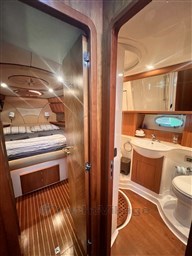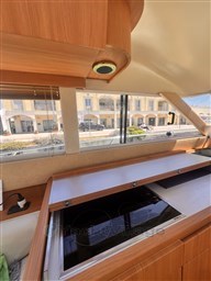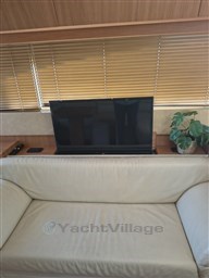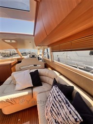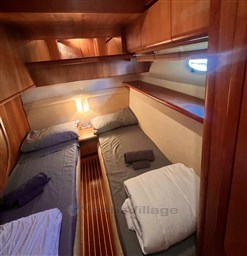 Grande dînette avec table et canapé double, poste de pilotage, kitchenette avec plaque vitrocéramique, évier, micro-ondes et double frigo dont un dans le cockpit, cabine double principale à l’avant, 2 cabines doubles invités avec lits simples, une cabine double VIP à l’arrière, 3 salles de bains avec douche.