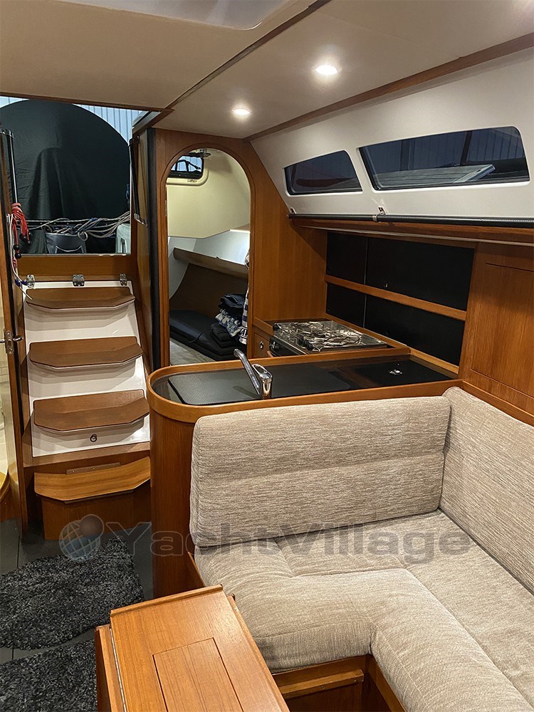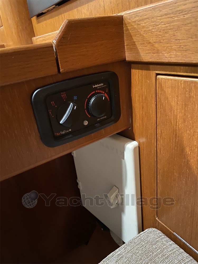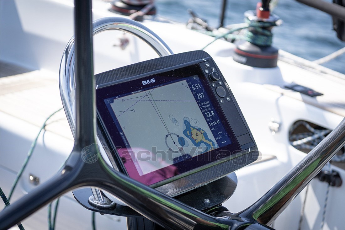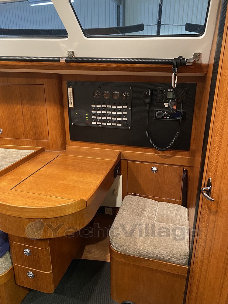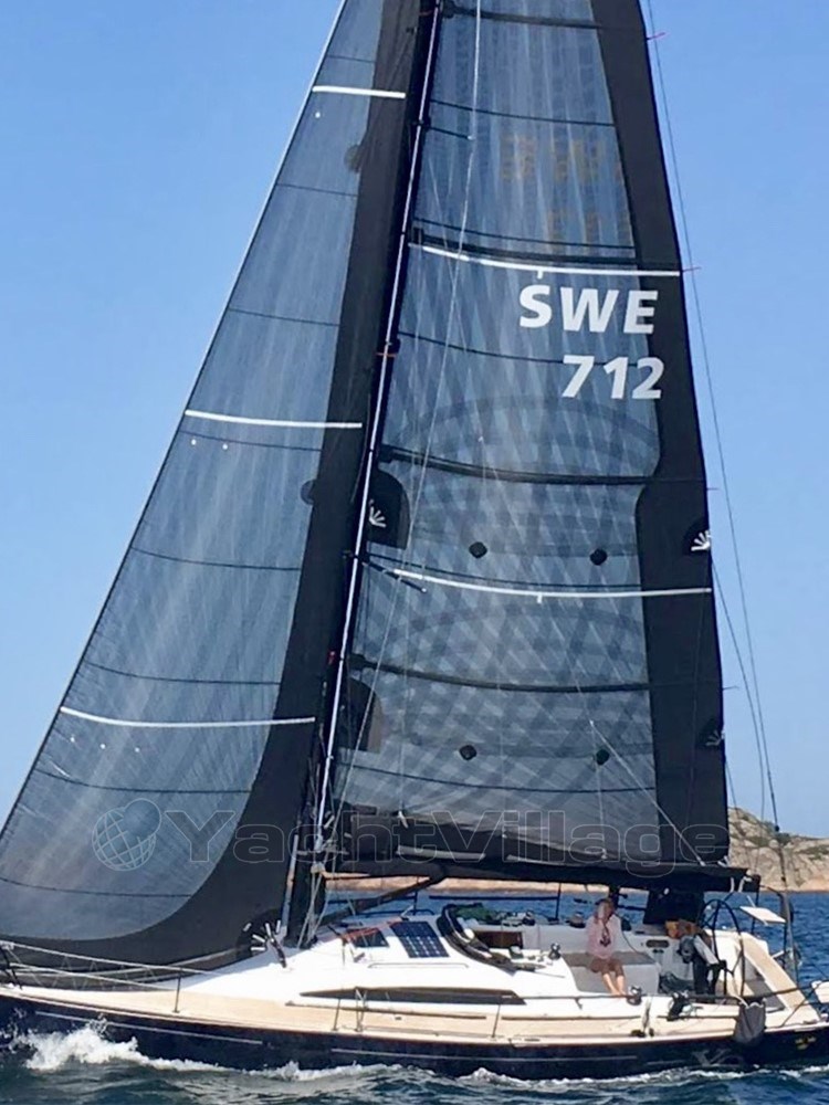 The yacht has won several races while also serving as a safe and comfortable cruiser. She is equipped with advanced B&G navigation electronics, a carbon mast and boom from Pauger, a high-quality sail wardrobe from UK Sails, and premium Harken deck equipment including an electric winch. Onboard comfort is also excellent with two cabins, heating, hot water, and a well-equipped galley.