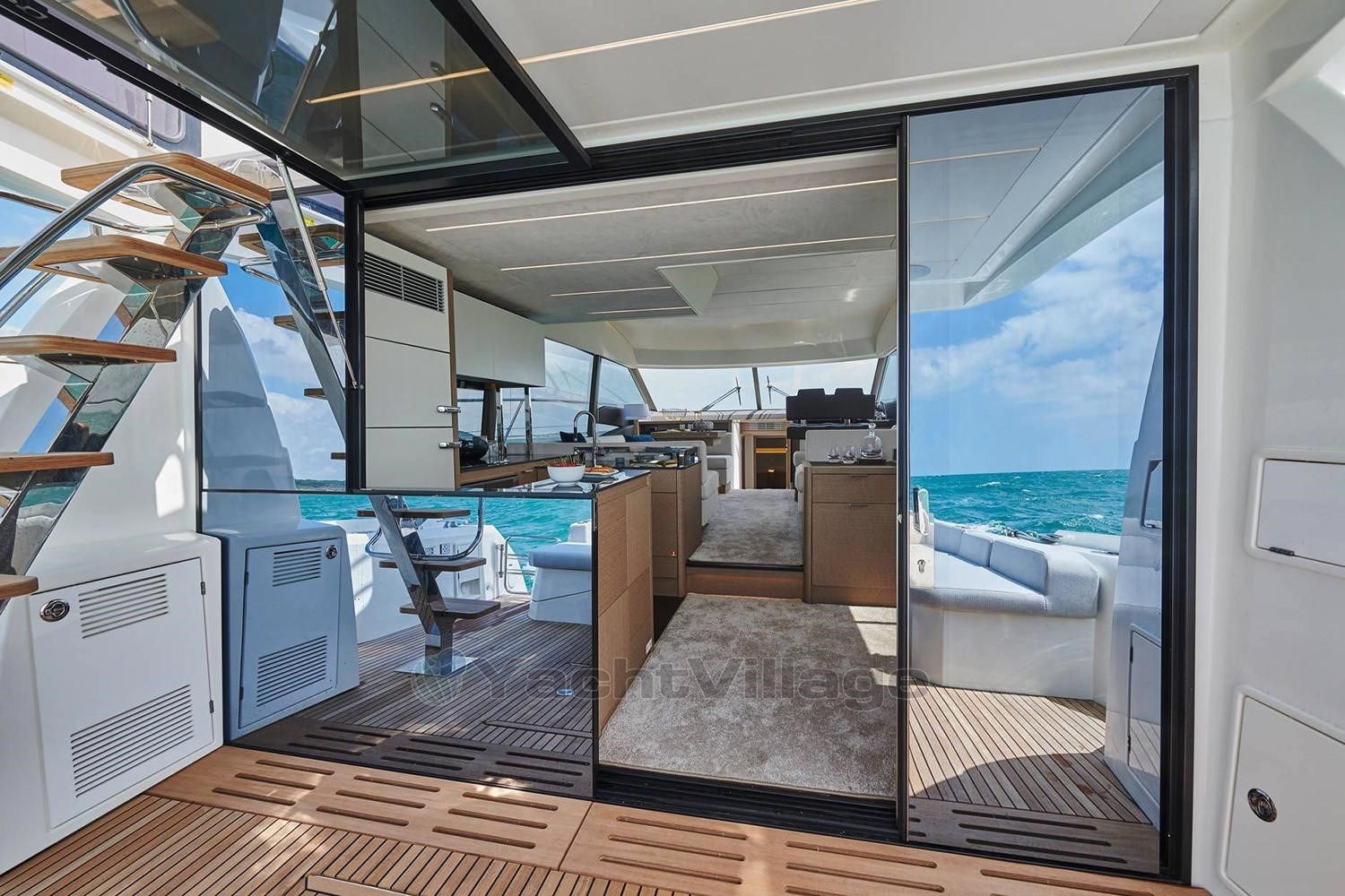 Chaque espace et chaque courbe ont été conçus en pensant à la forme, à la fonction et au confort. Un flybridge généreux et une arche radar élégante renforcent le confort embarqué et l’apparence puissante.