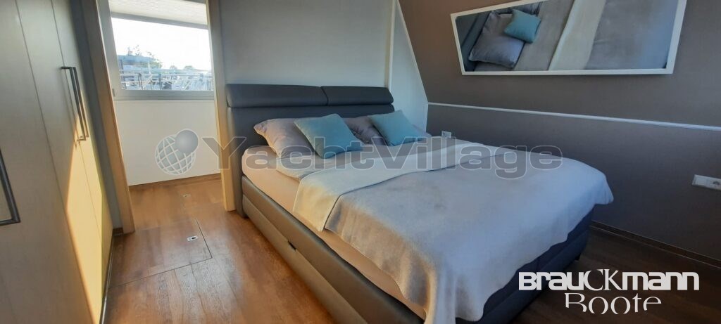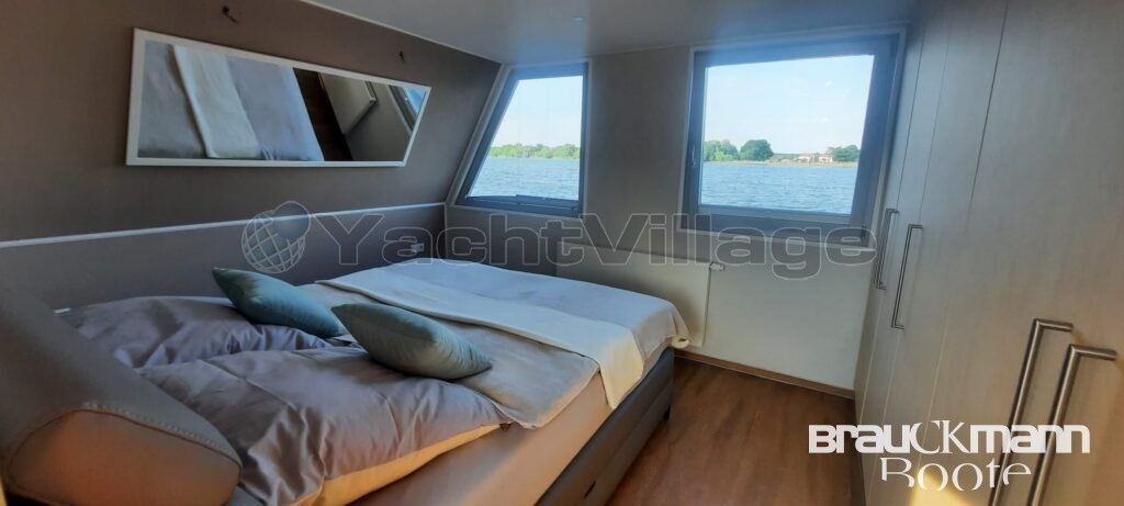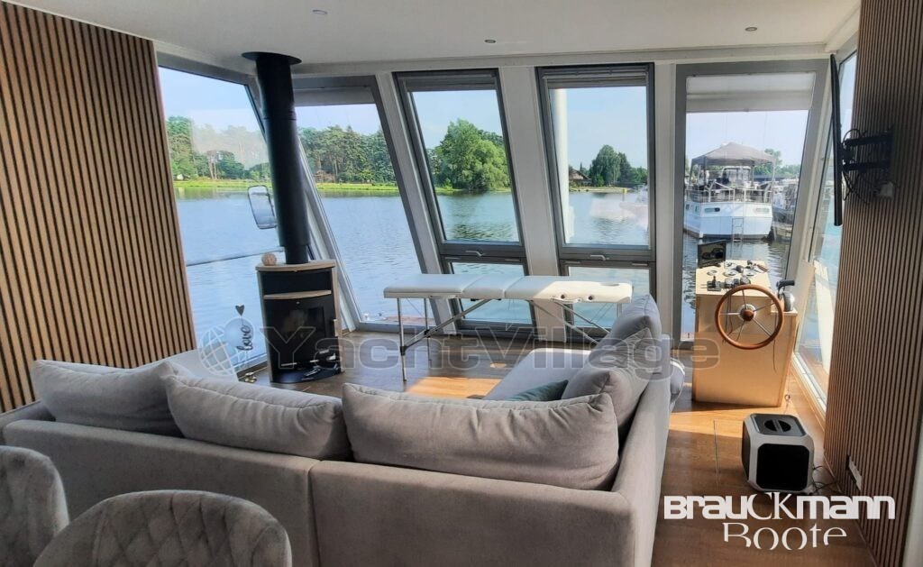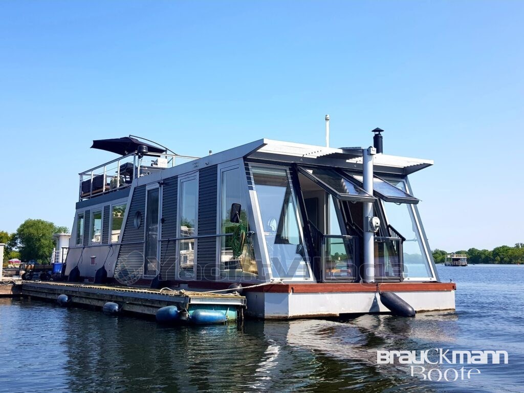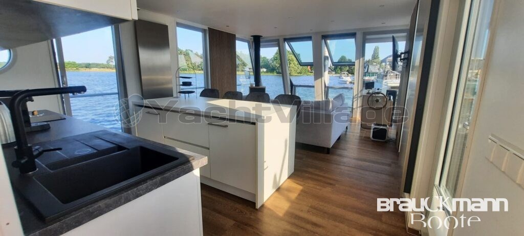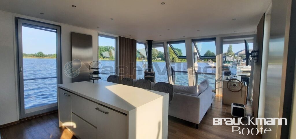 With a living space of 55m², you can make this houseboat your luxury apartment. The light-flooded three-sided glazed salon with large floor-to-ceiling French doors and the freely designed fitted kitchen leave almost nothing to be desired.