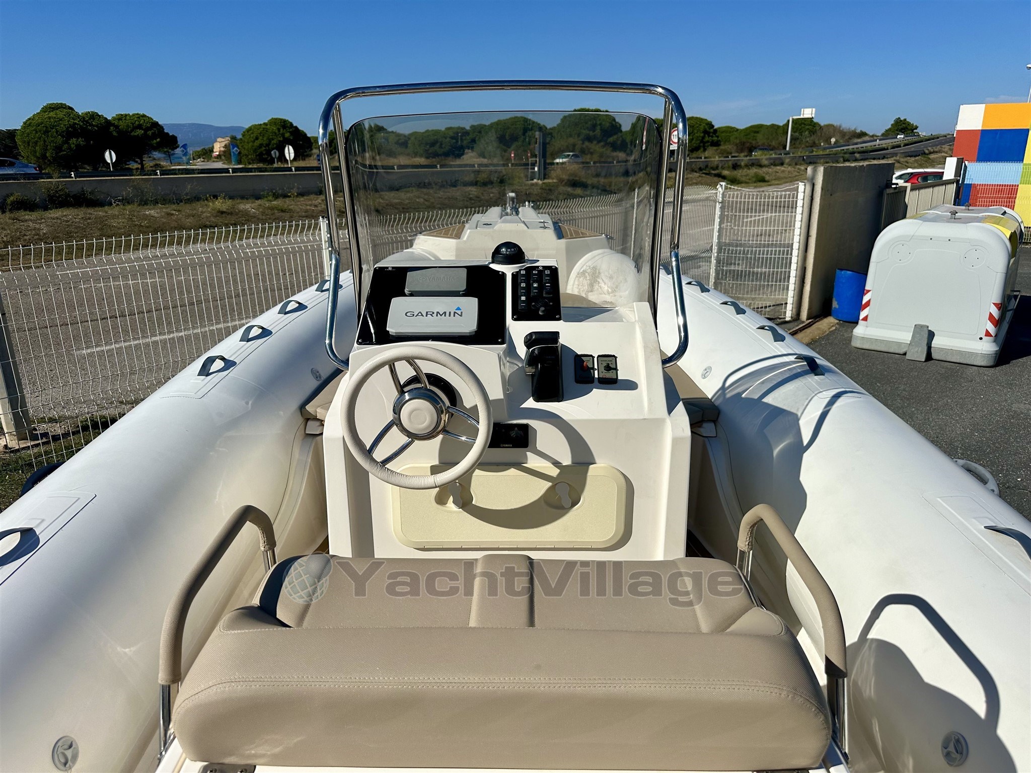 Options : Flexiteck sur le pont, guindeau électrique, Roll bar polyester, Taud de console, Taud de soleil, GPS/Sondeur GARMIN echoMAP 7'.