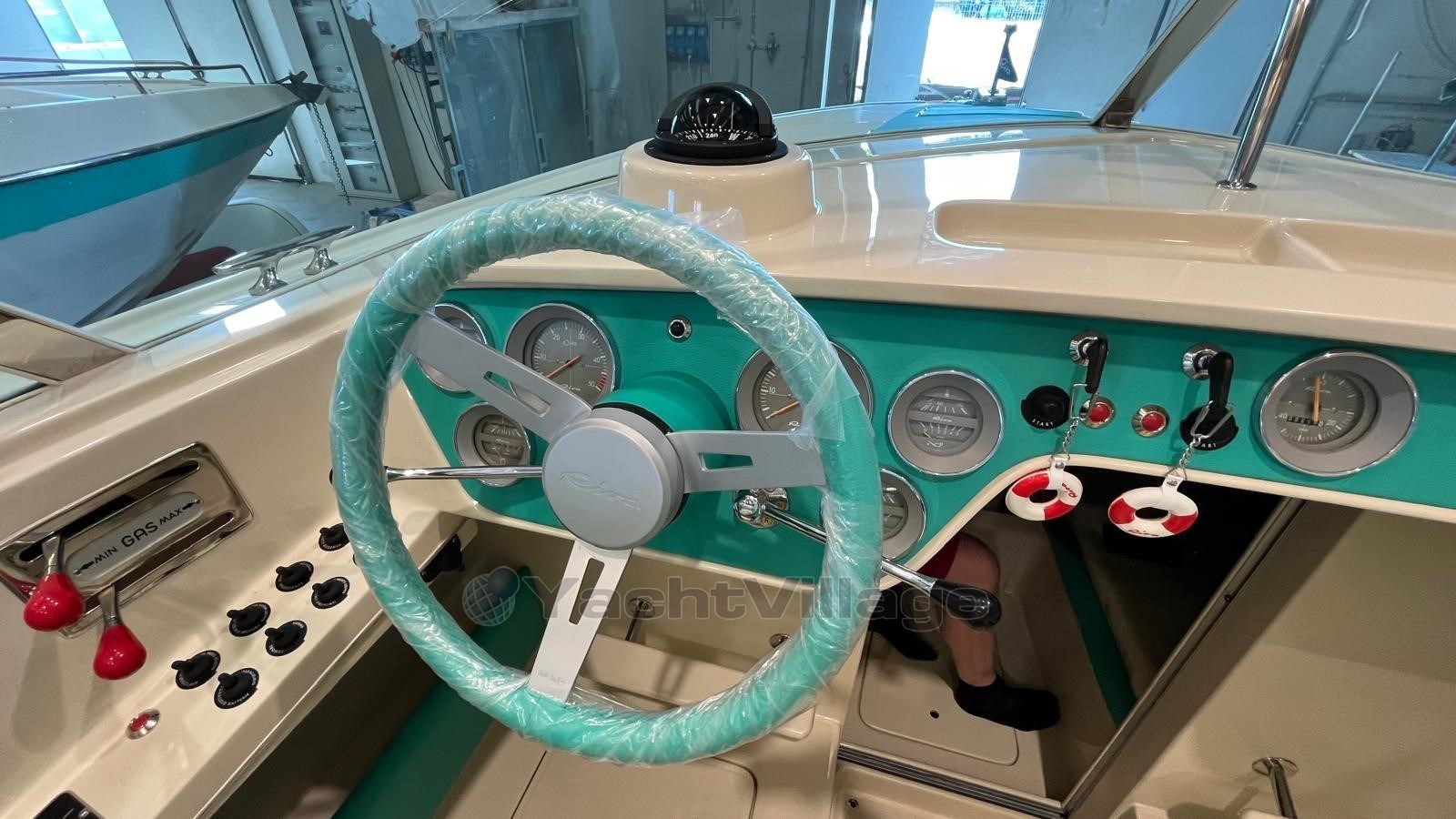 Le bateau St. Tropez 211 a subi une restauration complète, avec un traitement anti-osmose réalisé pour garantir sa durabilité dans le temps. La ligne de flottaison a été finie avec une élégante couleur turquoise Riva, rappelant le style classique de ces embarcations. L'arbre d'hélice a été complètement démonté et révisé, avec le remplacement des joints pour assurer des performances optimales. Le système électrique a été refait à neuf, ainsi que le compartiment moteur, maintenant entièrement rénové.