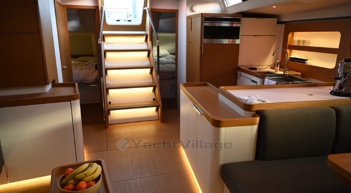 Sa coque en infusion sandwich balsa assure robustesse et légèreté, tandis que son gréement performant, équipé d’un mât en aluminium noir laqué et d’un jeu de voiles North 3Di, garantit des sensations de navigation exceptionnelles. Avec une vitesse de pointe impressionnante de 23 nœuds, YAGIZA est optimisé pour la course, tout en offrant un confort inégalé pour la croisière. À bord, l’intérieur spacieux et lumineux comprend trois cabines élégantes, une cuisine en forme de C bien équipée, un salon confortable et des espaces de rangement astucieux. La cabine propriétaire offre une véritable suite avec un lit central et des équipements modernes, parfaits pour une expérience haut de gamme.