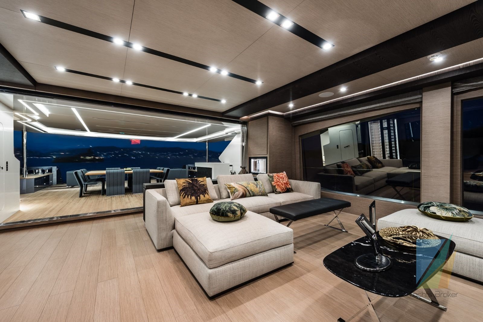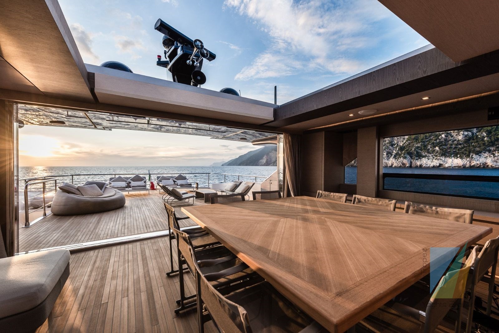 – Huge windows everywhere on board for a continuous connection with outside light and sea;
