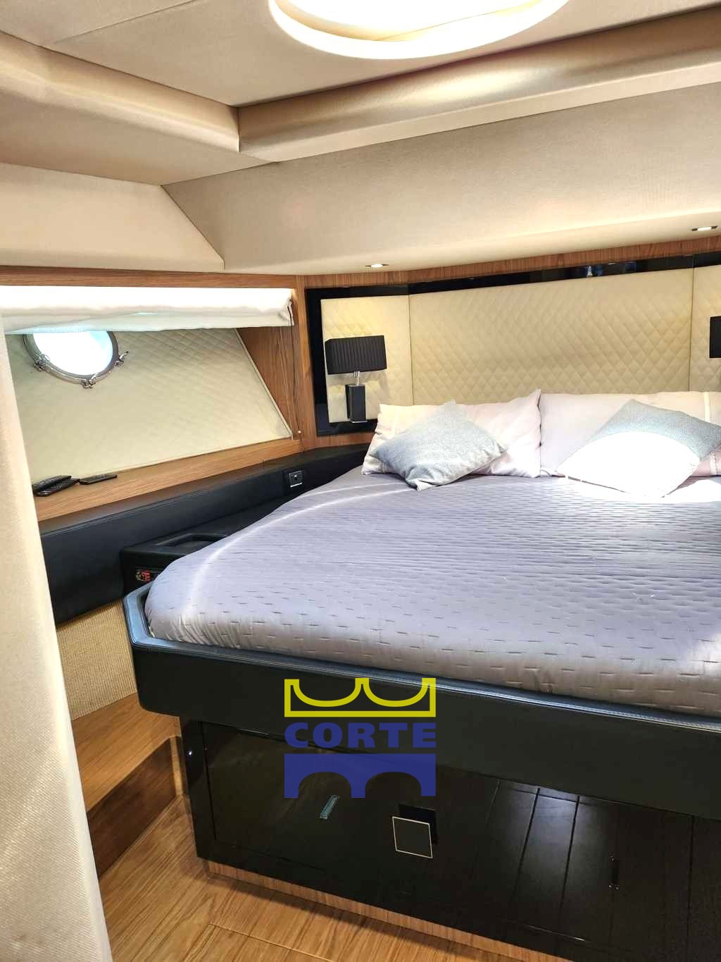 Cabine double VIP à l’avant avec salle de bain avec douche.