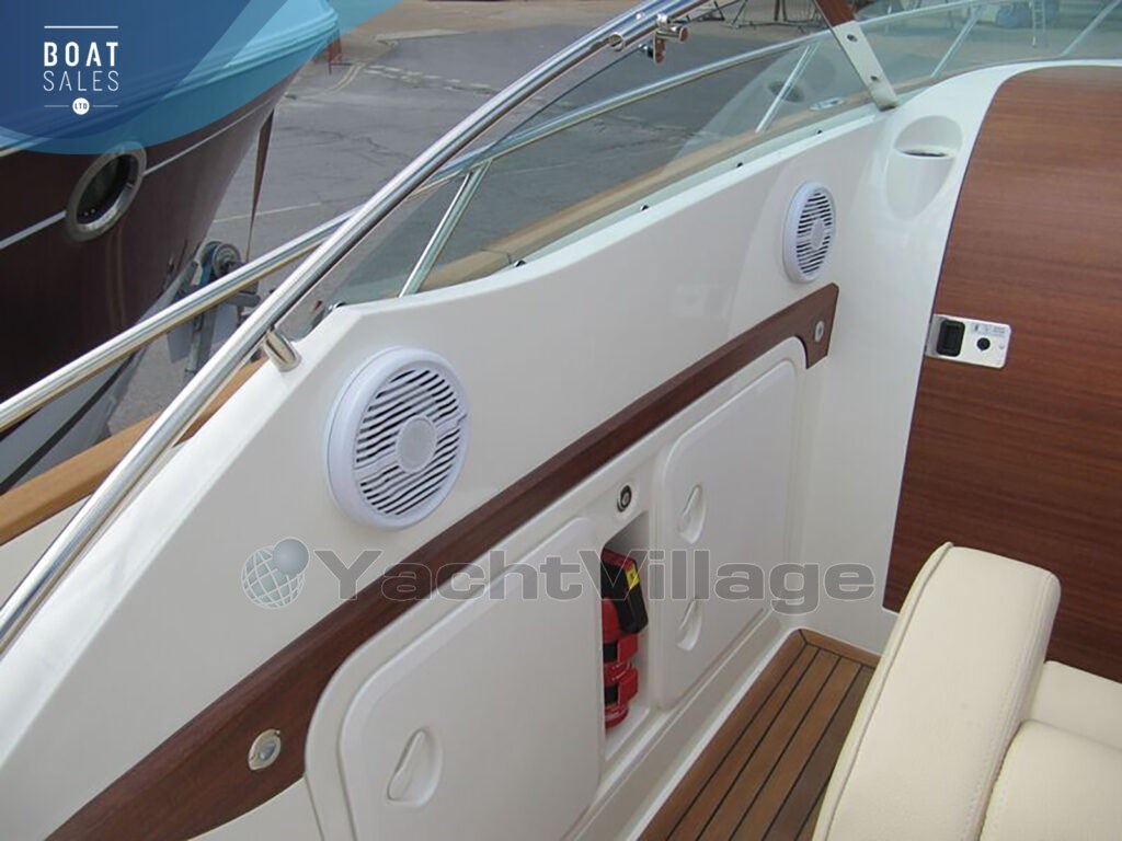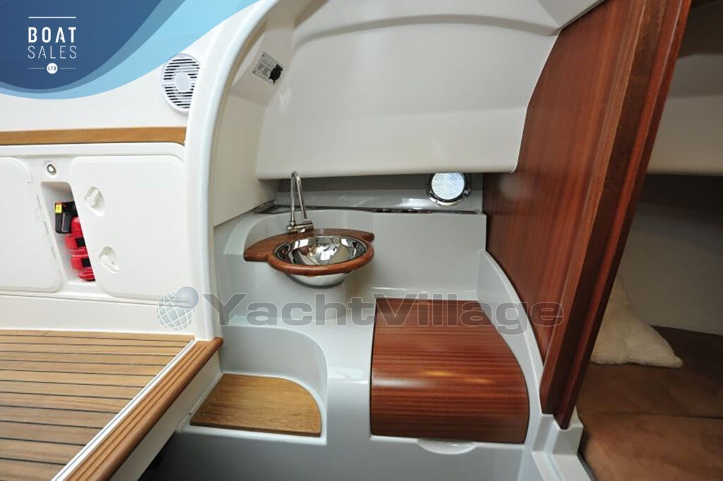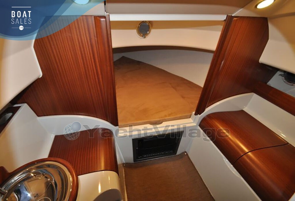two owners from new, approximately 330 hours, and one of the best-specified T27s on the market. Powered by a 6.2L V8 300hp Mercruiser, this race-bred Norwegian icon delivers 50-knot performance with genuine weekend capability — sleeping two, with a full teak deck, bow thruster, Coppercoat, mahogany and leather interior, compressor fridge, and launching trailer included. Everything done. Nothing to spend.