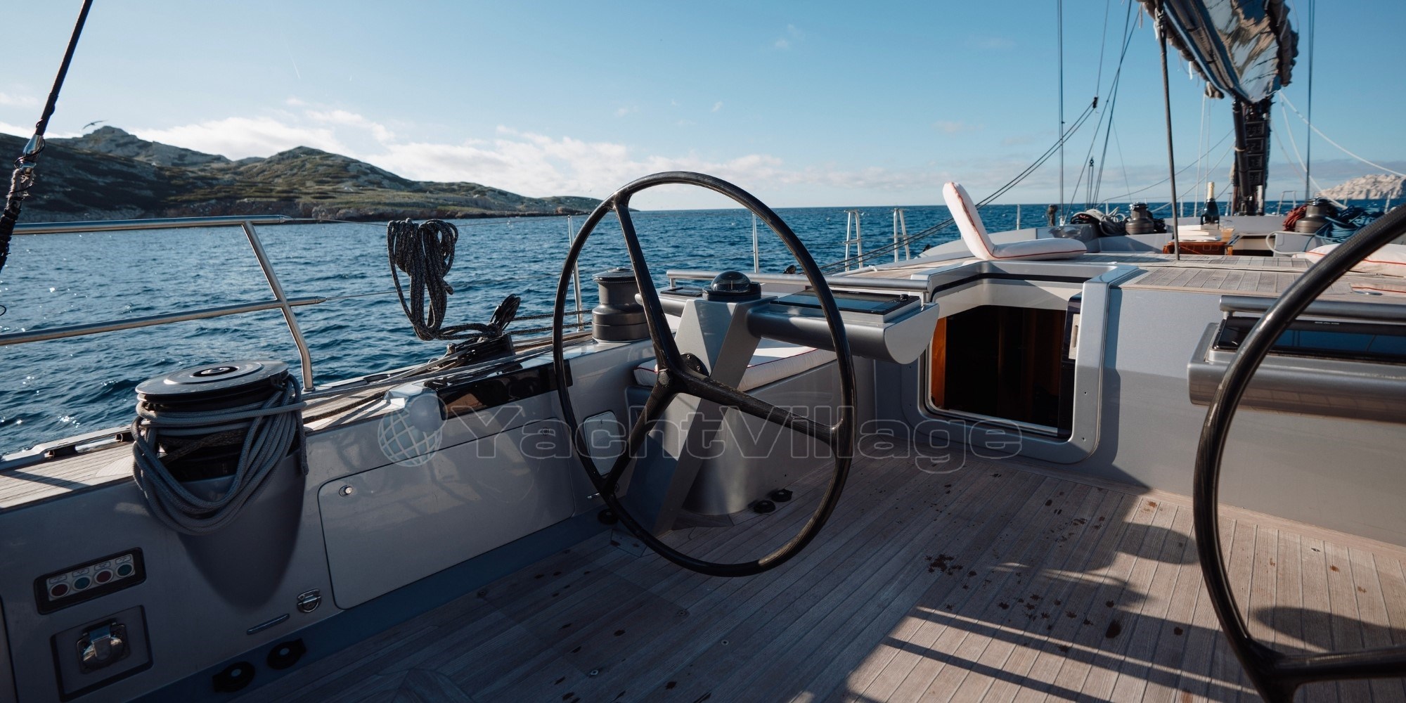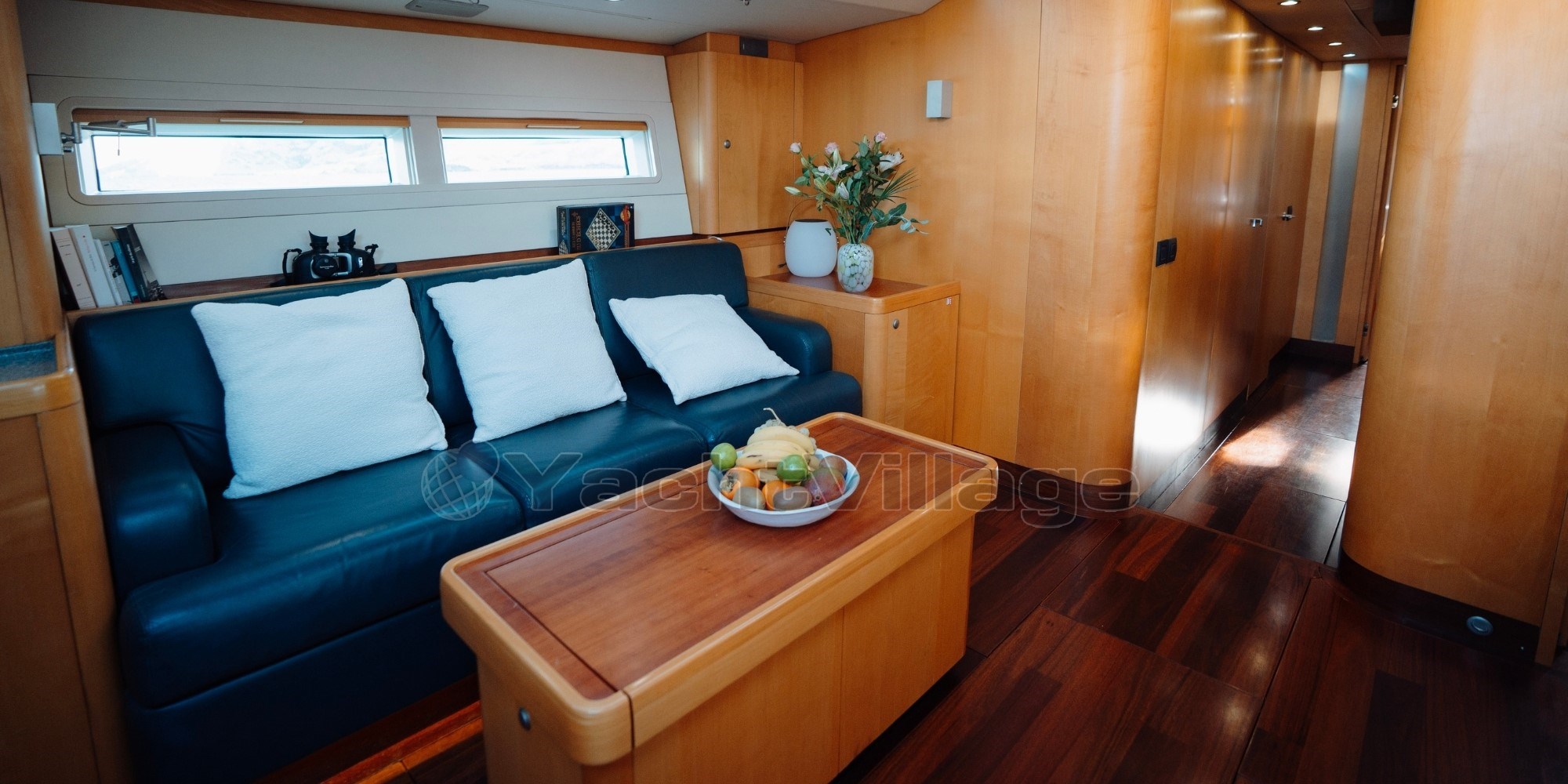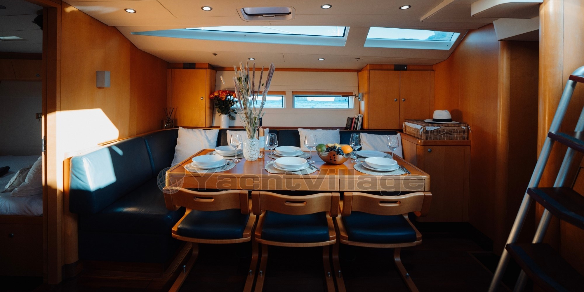 Le salon panoramique surélevé de VALKYRIE, baigné de lumière naturelle, offre une vue à 360° sur l’extérieur, un rare privilège sur ce type de voilier. Le design intérieur, chaleureux et minimaliste, en bois clair et finitions haut de gamme, invite à la détente.