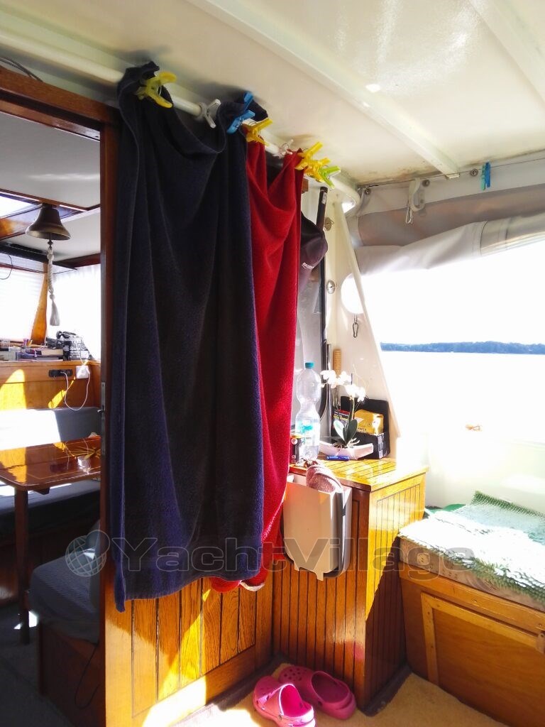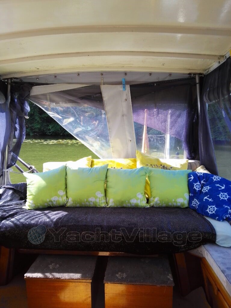 Suitable for max. 4 people / sufficient storage space / spacious sleeping cabin at the front / wet room with toilet (manual) and sink / kitchen, refrigerator, gas stove ( two burners ) table with seating (can be converted into sleeping) / functional spacious outdoor lounge ( can also be used in bad weather), swimming ladder, bathing board, inflatable boat