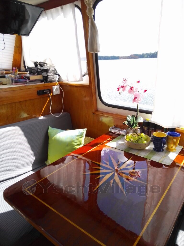 We offer here a loving, well-maintained motorboat for sale, complete with pot and pann, as we have expanded. The boat is in a hall.