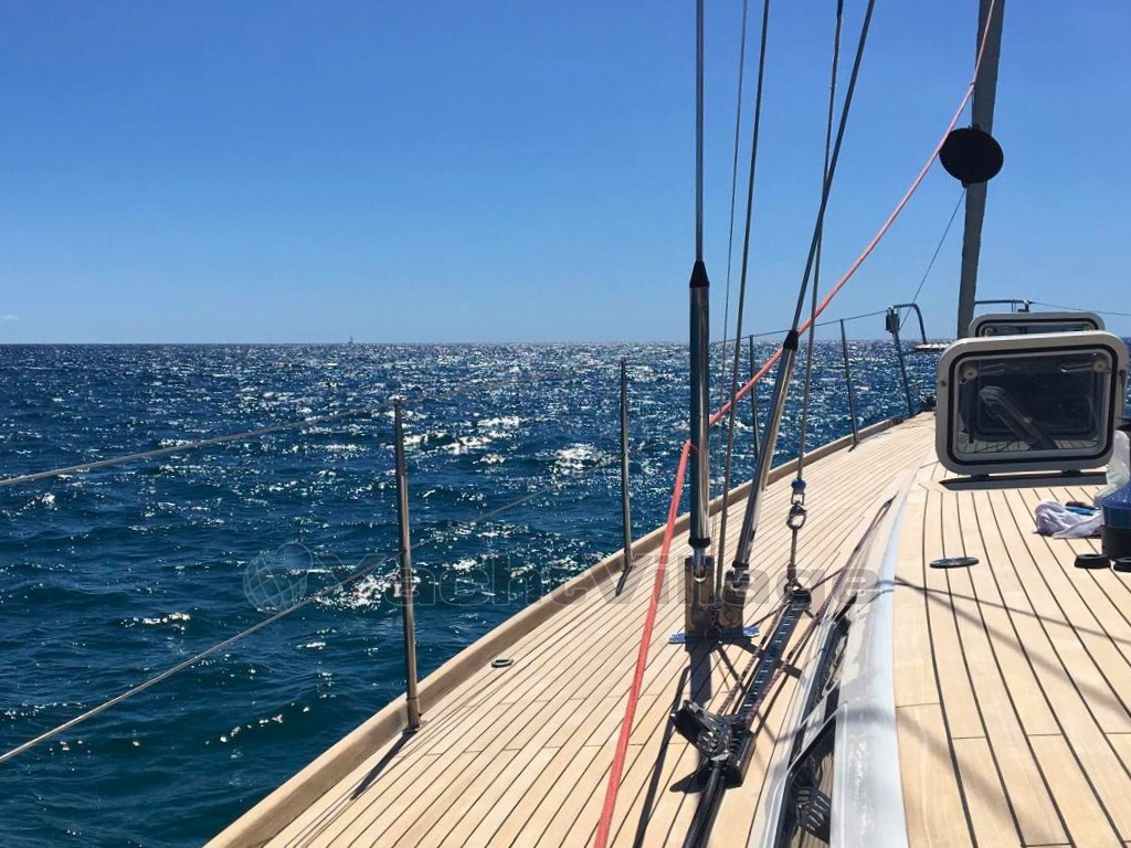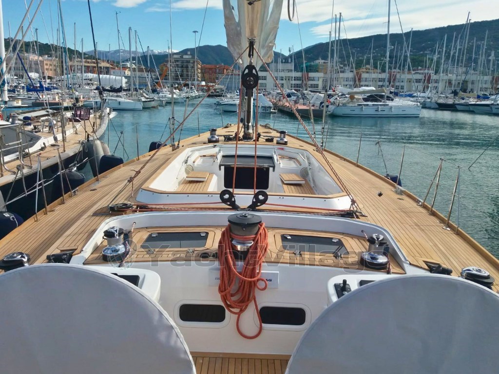 Depuis 2018 à ce jour, le bateau a subi d’importants travaux de modernisation, incluant le remplacement du moteur Cummins, la rénovation du teck du pont, l’installation d’un système électrique avec batteries lithium Victron, un refroidisseur inverter, la climatisation et la machine à eau. Le mât en carbone et la bâche Offshore Spars récemment repeints contribuent à maintenir de hautes performances à la voile.