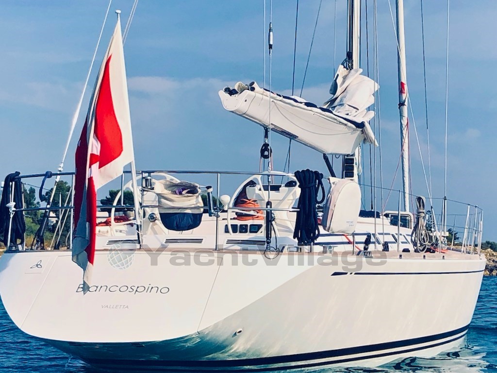 Le Swan 62 FD « Biancospino », livré en 2005 et conçu par Germán Frers, est un bateau de croisière performant construit selon les standards traditionnels du Nautor Swan, avec une coque en PRV et des renforts en Kevlar.