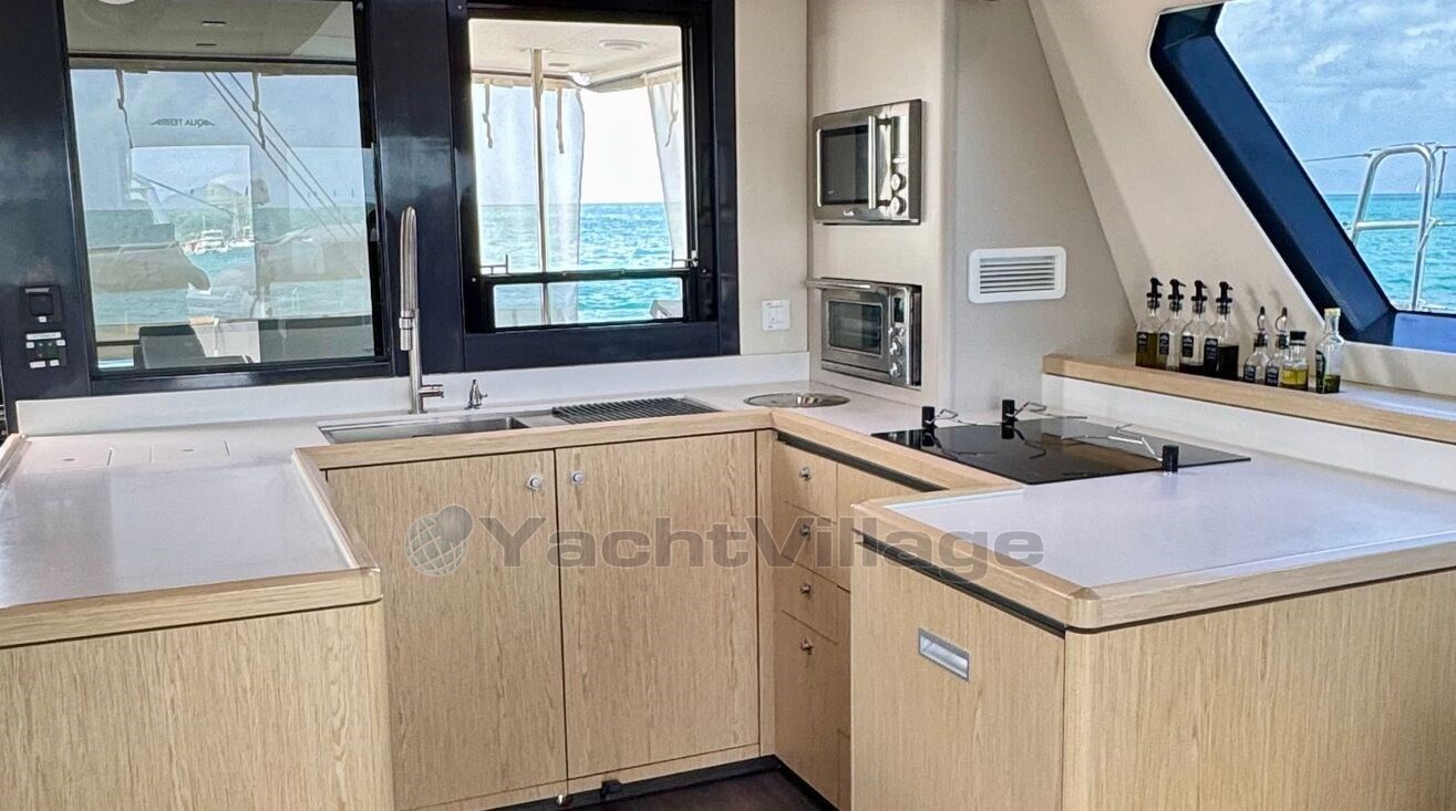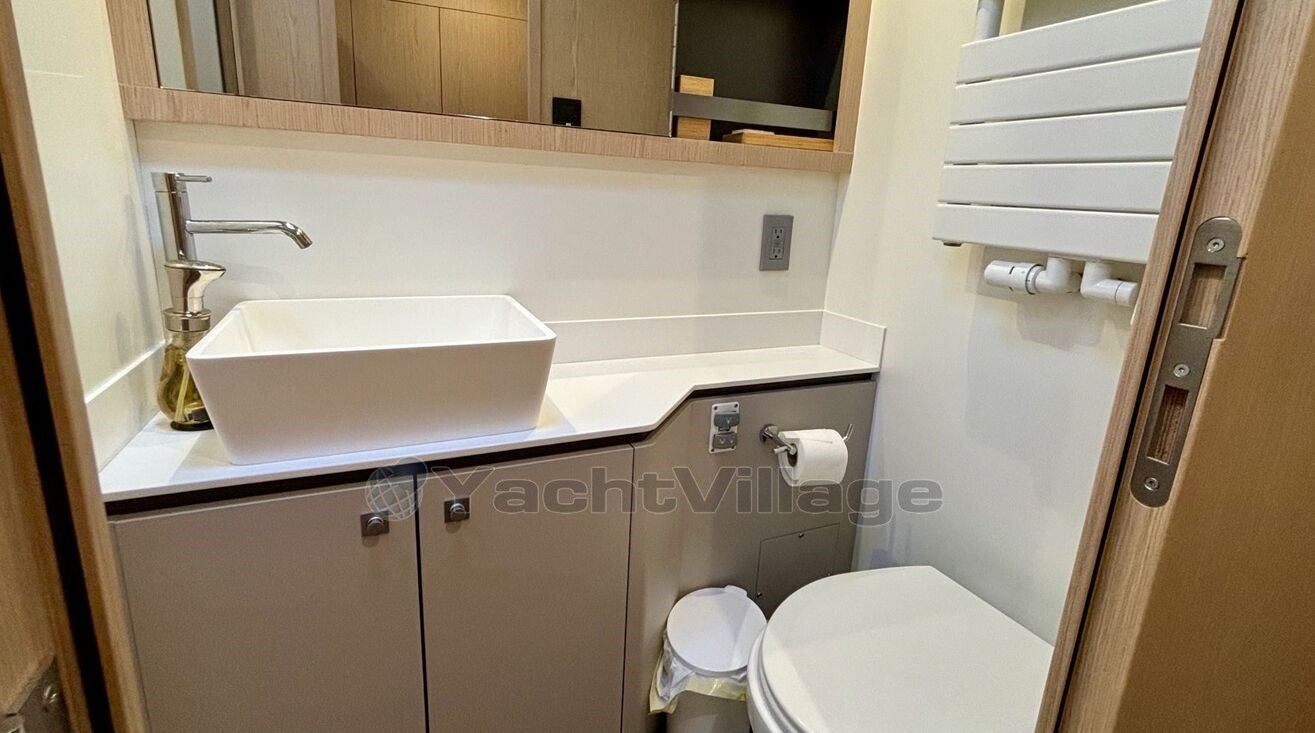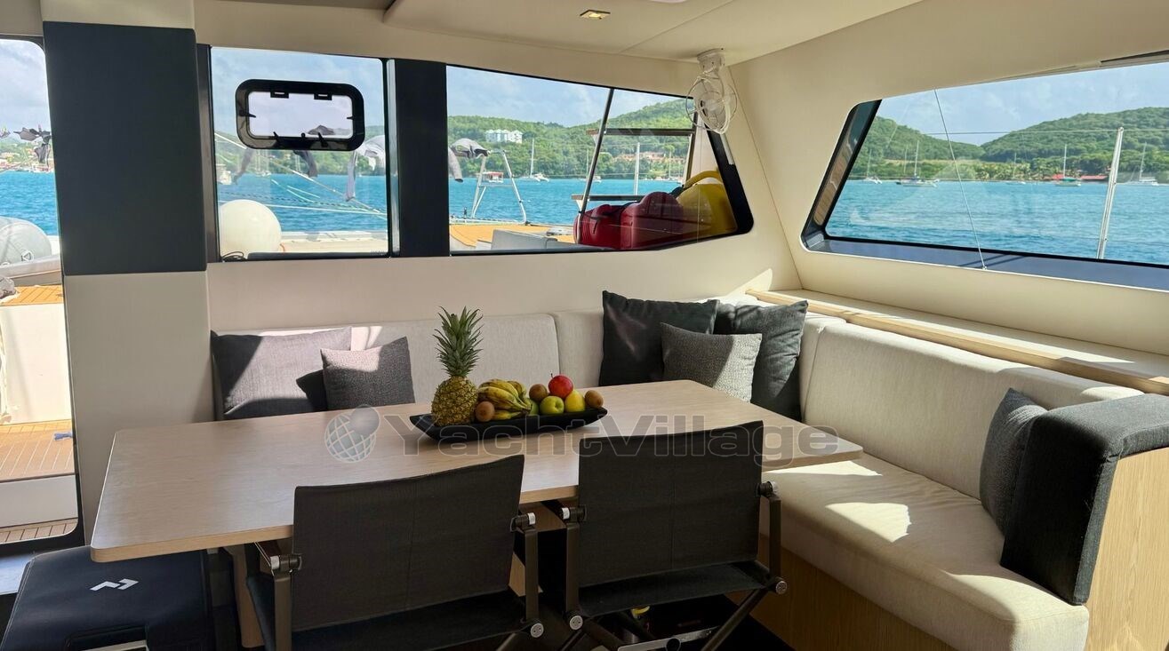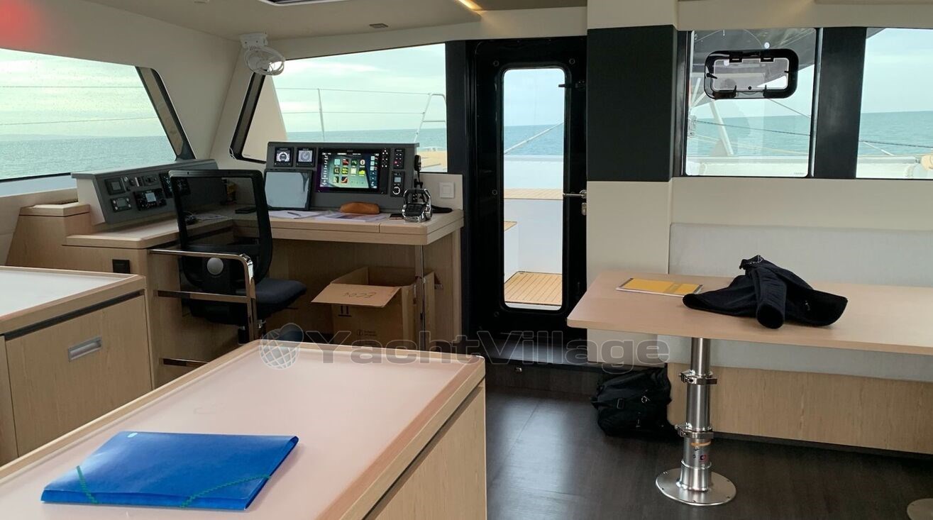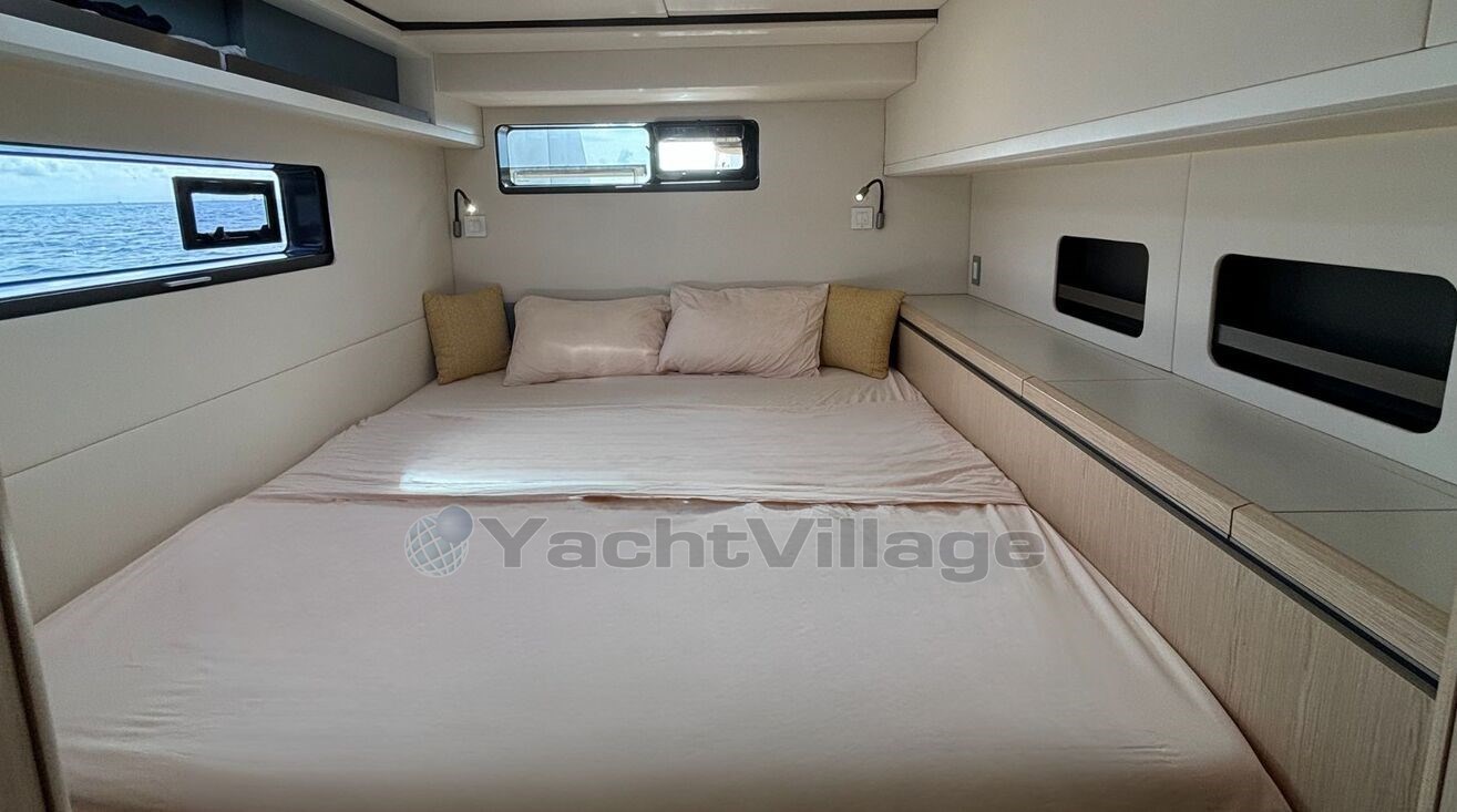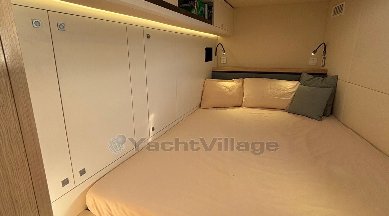 Le confort à bord est tout simplement impressionnant : 4 cabines invités pouvant accueillir jusqu’à 8 personnes, une cabine équipage, une cuisine entièrement équipée, climatisation WEBASTO de 50 000 BTU, chauffage indépendant, système audio haut de gamme FOCAL...