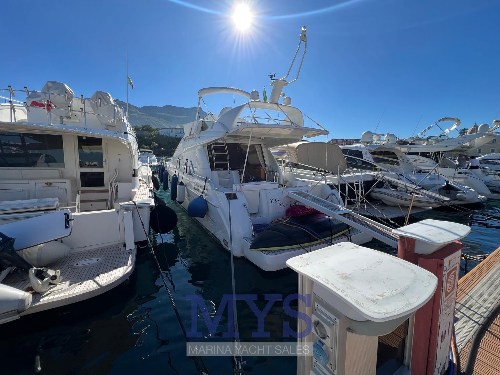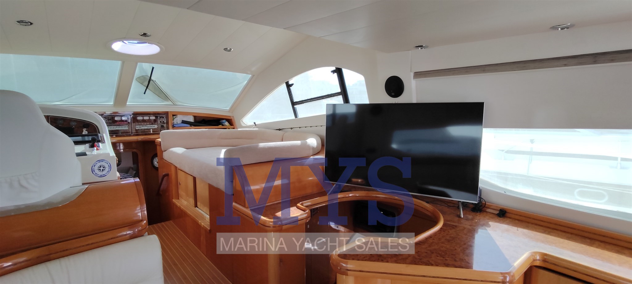 climatisation, passerelle Besenzoni, plateforme de bain, teck en excellent état, 3 réfrigérateurs internes, four, plaque en céramique, machine à laver, télévision, chaîne stéréo, appareil photo, coussins intérieurs et extérieurs complets, auvents de braguette et de cockpit, couvre-brague, système TV, télévision numérique, lumières de courtoisie, douche extérieure.