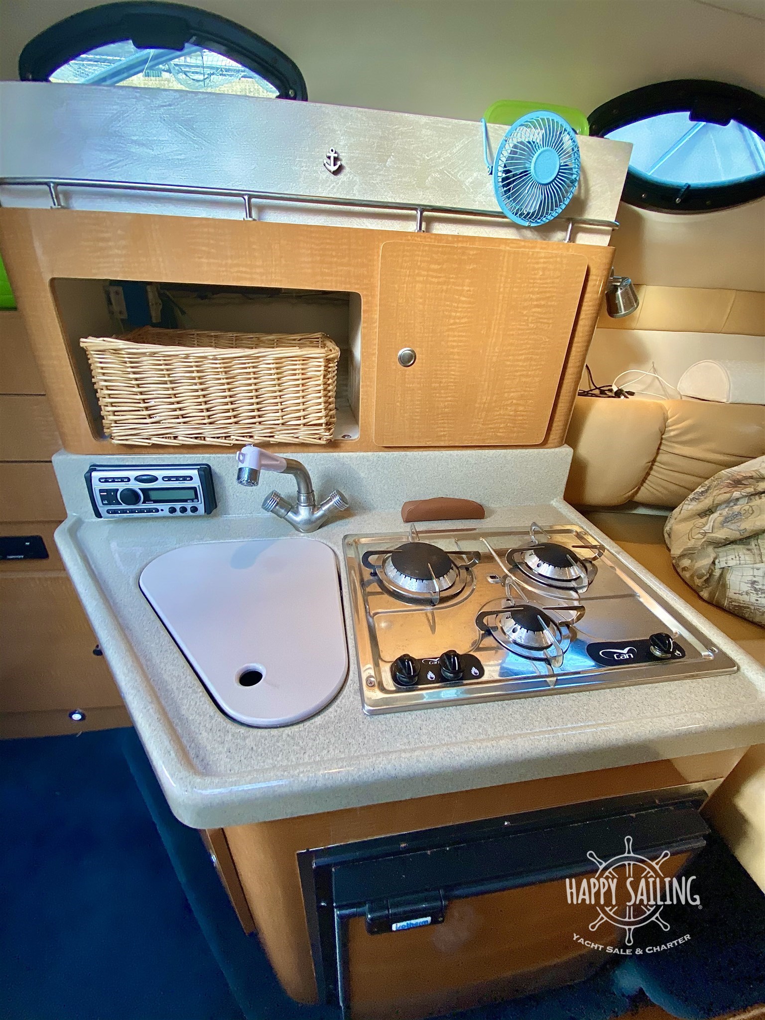 Excellent bateau de 30 pieds, avec de grands espaces intérieurs et extérieurs d’une capacité de 10 personnes. Cockpit spacieux avec table, lavabo et canapés avec coussins en cuir et grands coussins de bain de soleil à l’avant. Plate-forme de bain spacieuse pour porter l’annexe, arceau de sécurité avec système de sonorisation et d’éclairage, auvent supérieur et fermeture totale pour le camping nautique et pour pouvoir utiliser le bateau même en hiver.