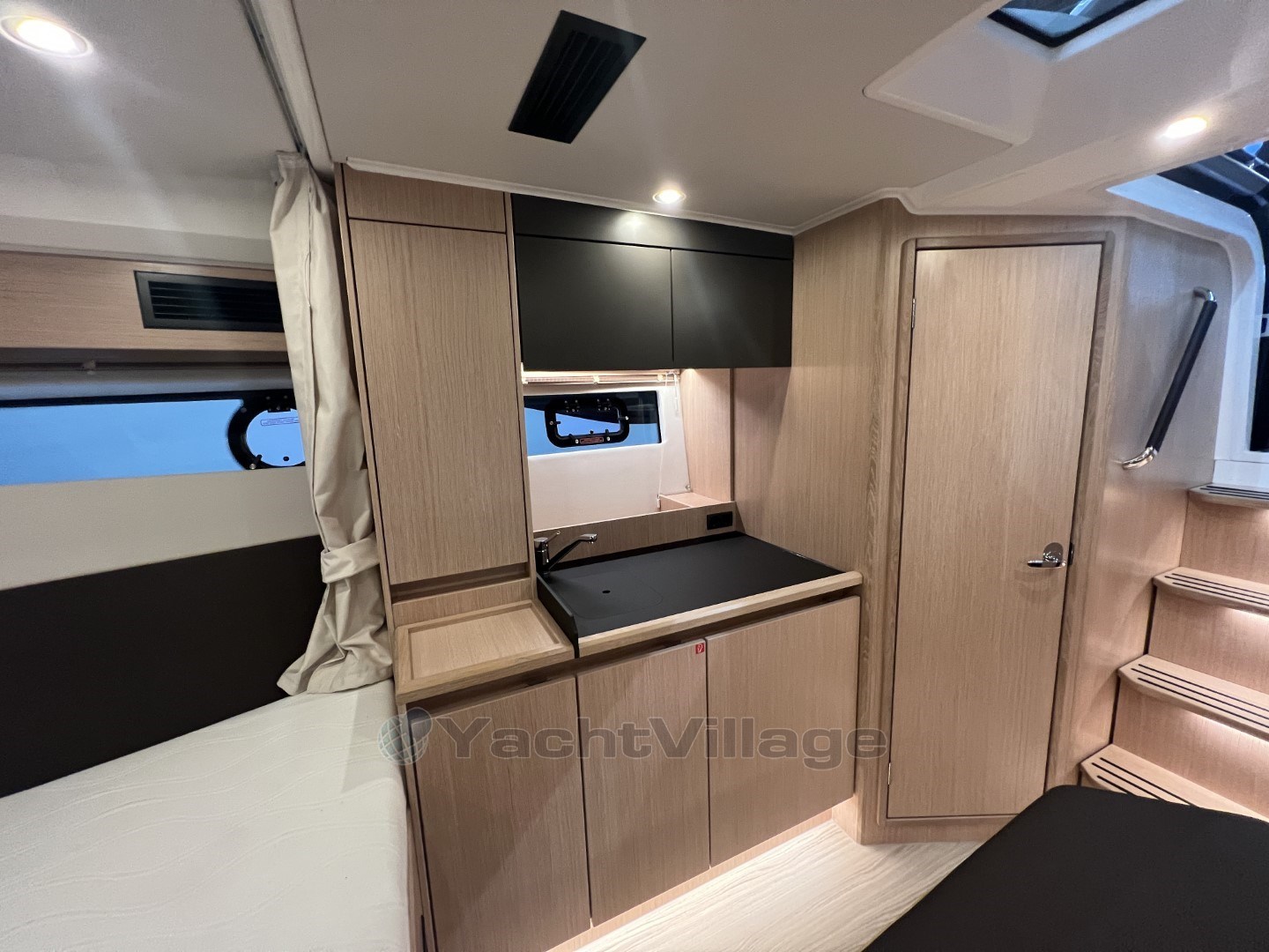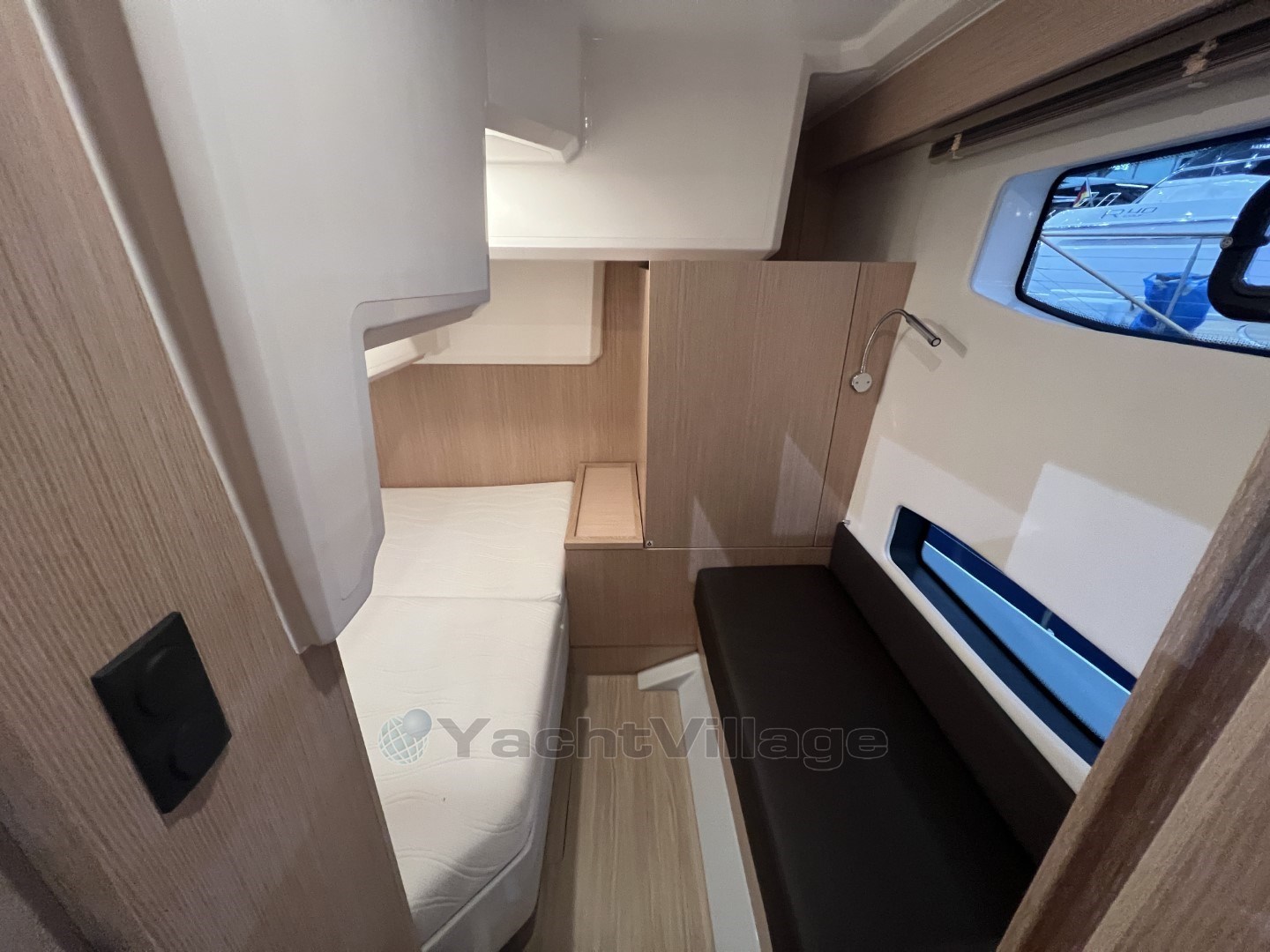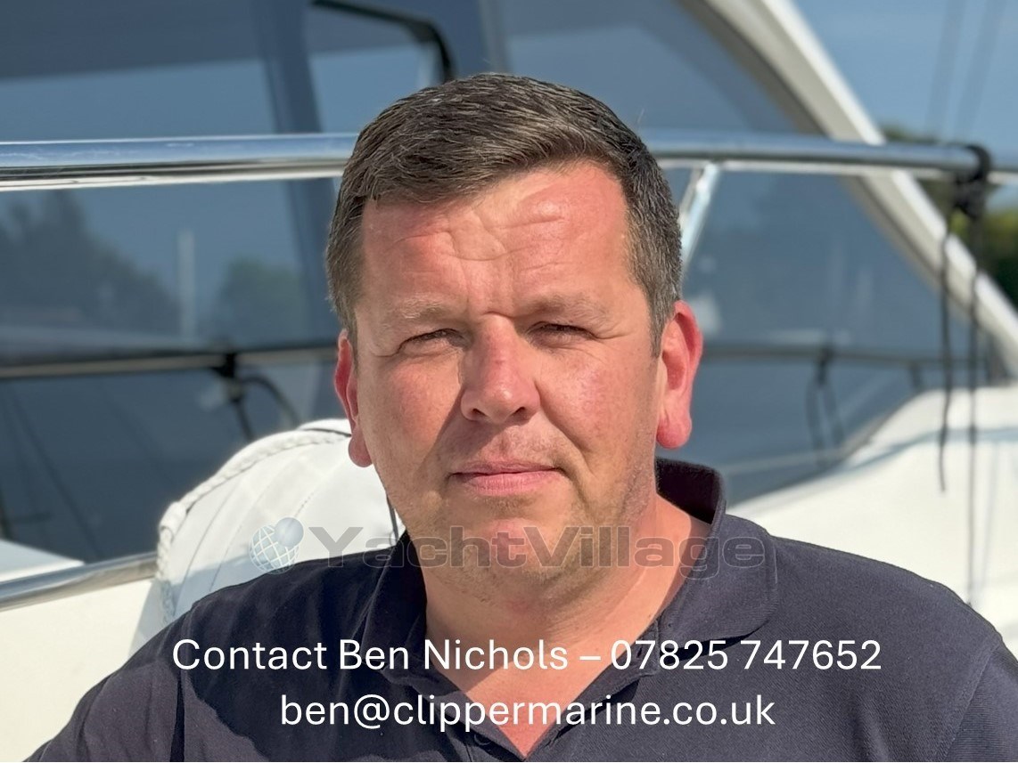 TV preparation in salon, digital and analog, inc antenna Trim tabs, electrically adjustableTunnel bow thruster (100 kgf), incl. service batteries, 1 x 12 V / 140 Ah, AGM Simrad RS40 VHF with inbuilt AIS Receiver + Simrad HS40 wireless handset Electric anchor windlass Anchor 16 kg incl. chain (8 mm, 50 m), galvanized (only with electr. windlass) Camper cover Wood colour 'Nordic Oak' Floor - Elm Additional service battery Transport to Swanwick Marina Commissioning (with antifouling)