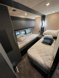 CABINE PROPRIÉTAIRE AU MILIEU DU NAVIRE AVEC SALLE DE BAIN ATTENANTE, CABINE DE DOUCHE SÉPARÉE. 2 CABINES D’INVITÉS AVEC LITS PLATS AVEC ACCÈS À LA SALLE DE BAIN PARTAGÉE. CABINE AVANT VIP AVEC LIT CENTRAL ET ACCÈS À LA SALLE DE BAIN PRIVÉE