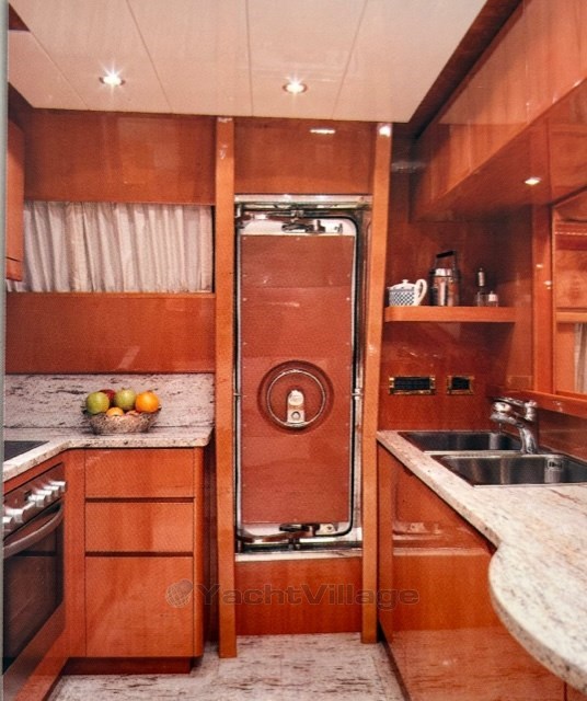 Climatisation - dessalinisateur - plaque vitrocéramique de cuisine - chaîne stéréo - système TV - double générateur Kohler - passerelle hydraulique - bossoir sur le flybridge.