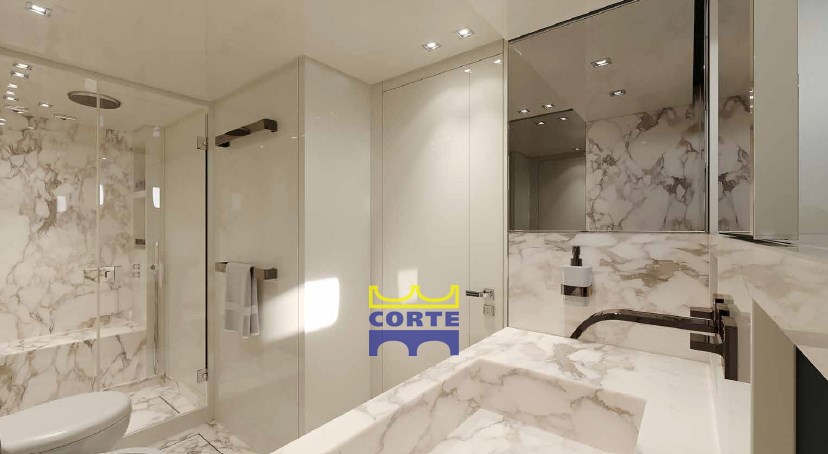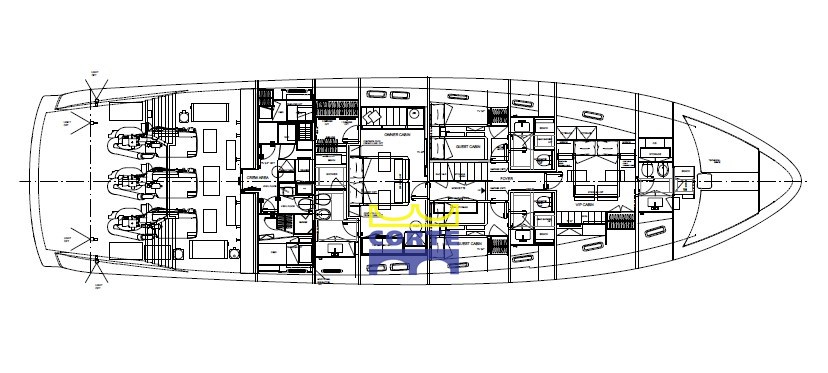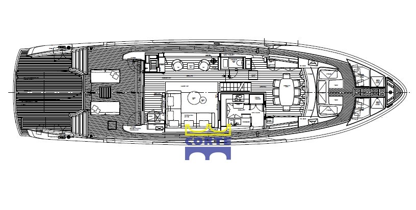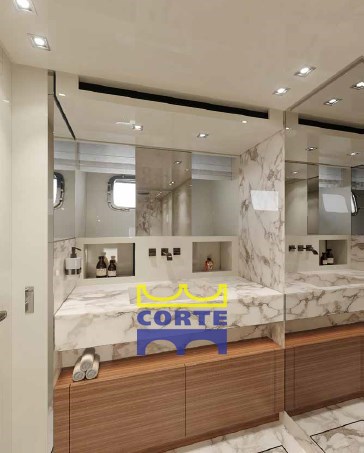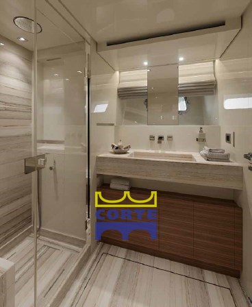 4 cabines, 4 salles de bain, 2 cabines équipage.