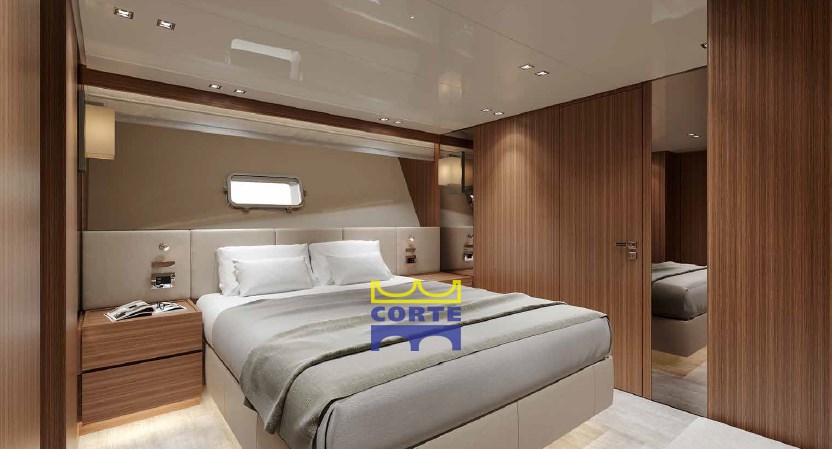 Double cabine principale au milieu du navire,. avec TV 40 », chaise longue, dressing. Salle de bain du propriétaire avec grande douche.