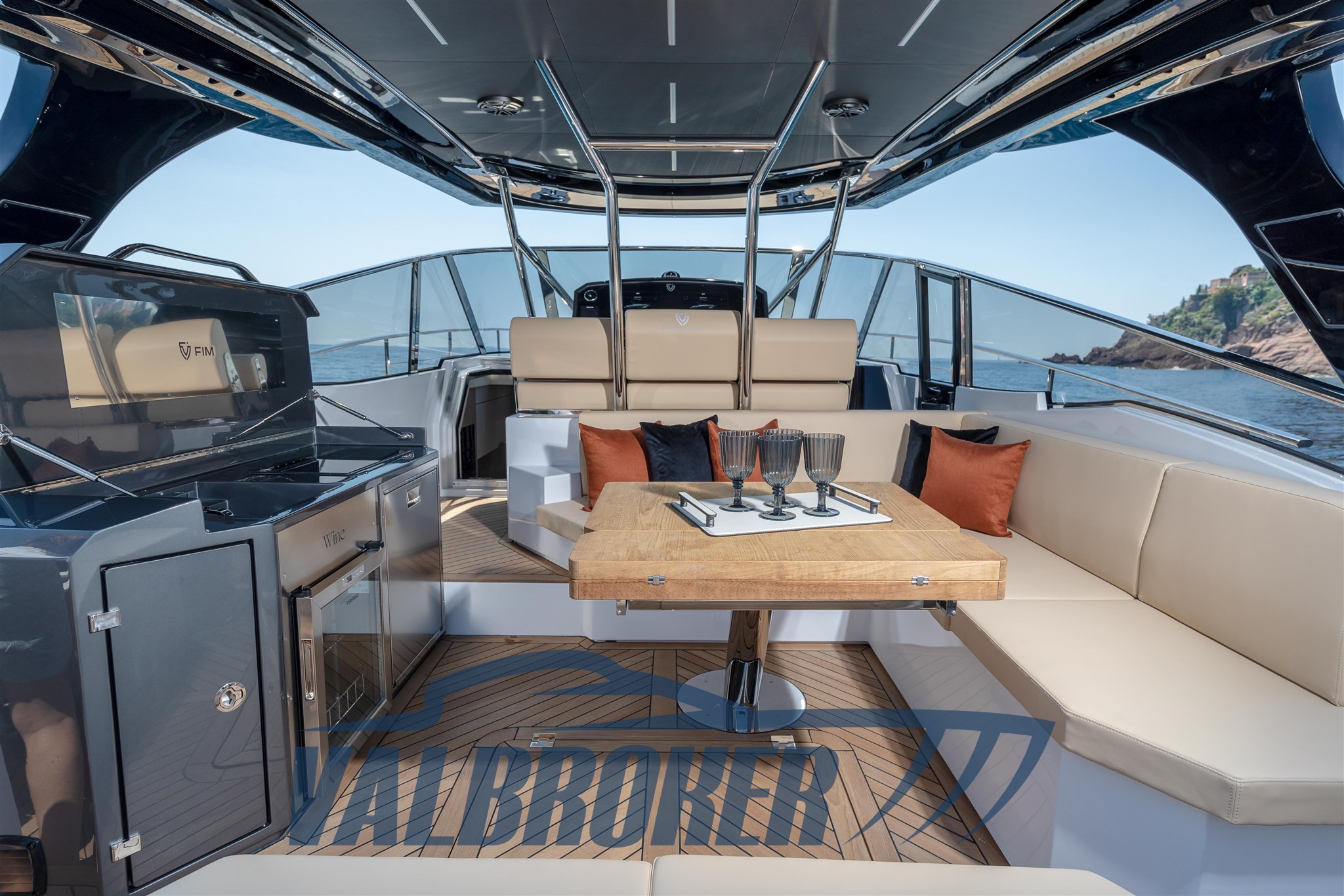FIM Regina 470 un yacht unique et innovant MADE IN ITALY. Il a remporté le prix de la « révélation de l’année » au salon nautique de Cannes 2023. BATEAU DE DÉMONSTRATION. Profitez au maximum des espaces extérieurs, grâce aux mouvements à l’arrière et à l’avant. Le bain de soleil d’étrave, en se traduisant latéralement, crée un véritable espace convivial à l’avant. Le salon arrière garantit une grande polyvalence, grâce à la possibilité de configurer la dînette extérieure de différentes manières. Le cockpit arrière peut être agrandi grâce à un mécanisme de division du bain de soleil : cela crée une zone centrale spacieuse, qui assure une habitabilité maximale.