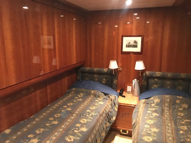 Cabine principale avec lit double, dressing, salle de bain avec douche séparée - cabine VIP avec lit double, salle de bain avec douche séparée - cabine invités avec deux lits plats, lit pullman, salle de bain avec douche séparée - cabine invités avec deux lits plats, lit pullman, salle de bain avec douche séparée.