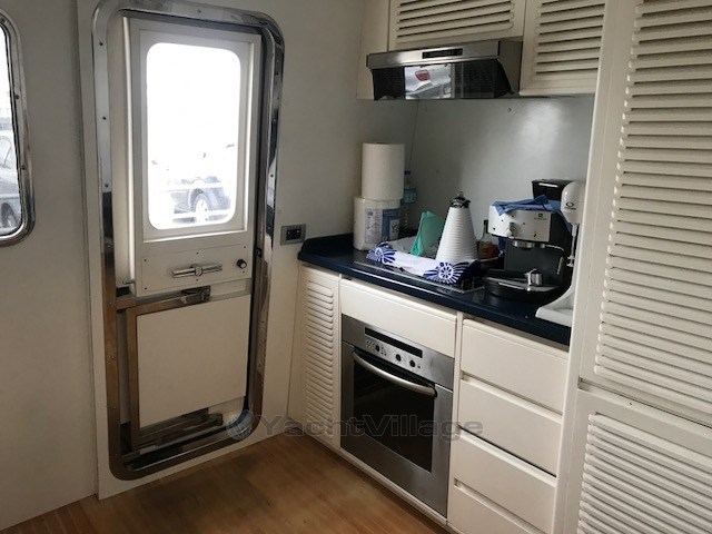 Climatisation Condaria - Dessalinisateur Marinco 300 lt/h - armoire de bar cockbridge avec grill et réfrigérateur - réfrigérateur/congélateur - four - plaque vitrocéramique - lave-linge - coffre-fort dans la cabine du propriétaire - antenne TV satellite - TV LCD - propulseur électrique d’étrave et de poupe Side Power.