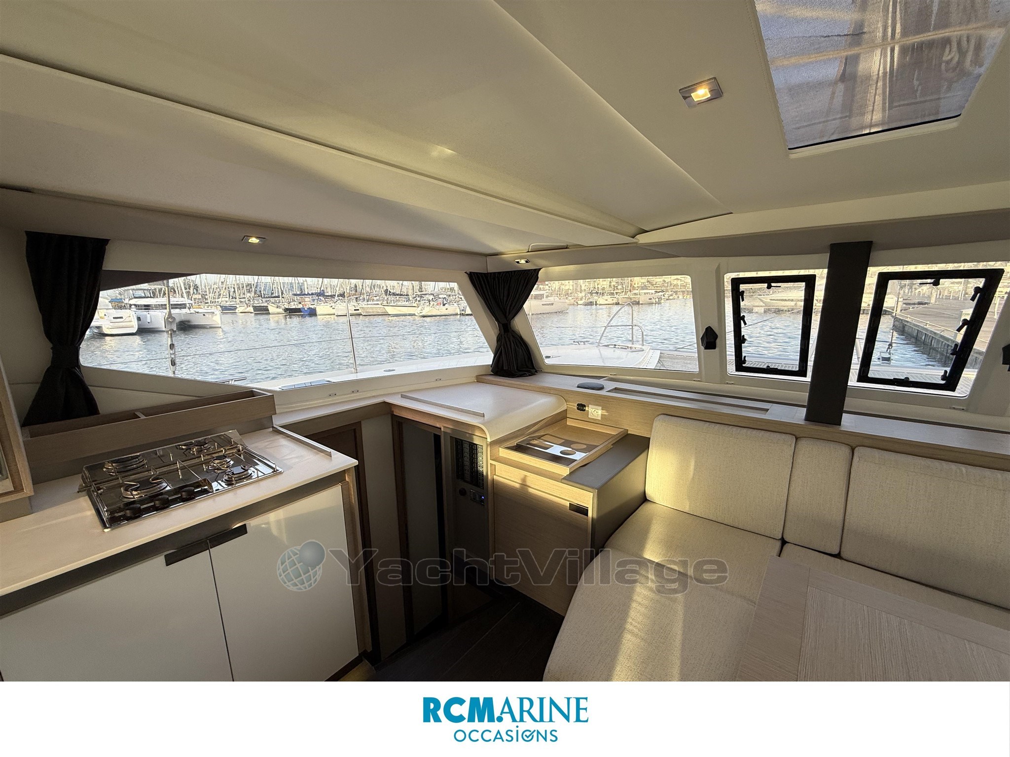 - Espaces de vie bien agencés, grande sensation d’ouverture sur l’extérieur, circulation fluide entre cockpit et carré.