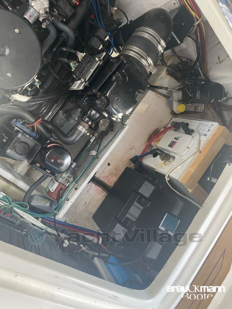 The special features of this sports cabin boat include the air conditioning, the bow thruster and the sporty 5.7 liter Mercrusier with 305 hp and Bravo 3 DuoProp drive.