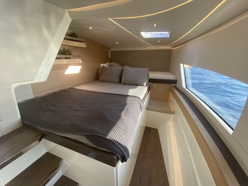 Le Makai M37 est un catamaran haute performance doté de deux cabines spacieuses et d'une cuisine, ce qui en fait le catamaran à moteur le plus polyvalent du marché. Mais ses atouts ne se limitent pas à ses caractéristiques techniques ; son design emblématique, sa consommation de carburant optimisée grâce à ses moteurs diesel in-bord et sa technologie de propulsion Q-SPD (en option) offrent des sensations uniques à la barre.