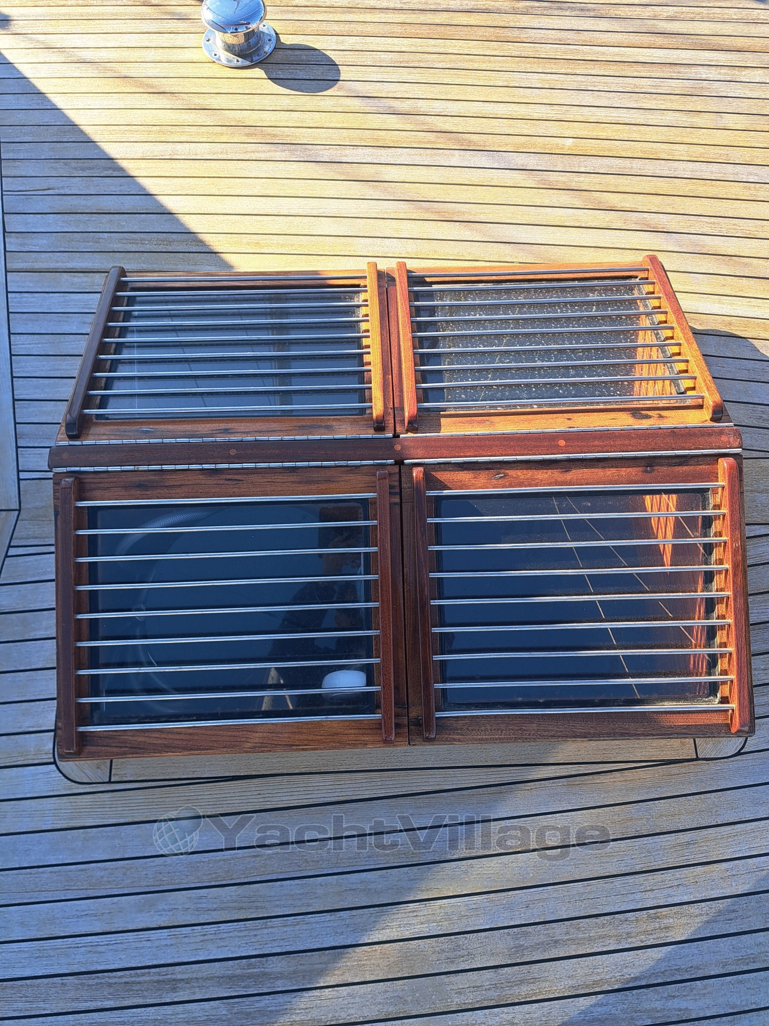 Quille rigide à tender en aluminium Quicksilver 3,20 m, établi rigide avec réservoir de carburant et batterie de démarreur moteur avec accouplement rapide, moteur Mercury 4 t 15 ch avec allumage électrique (année 2020). Deux radeaux océaniques, 8 places chacun Eurovinil (2019) Gillets de sauvetage complets pour 16 personnes Système MOB Équipement de sécurité standard, ligne de vie Passerelle avec longerons en acajou et mâts LED en teck Lumières de pont sur écarteurs LED Feux de navigation Lampes de marche sur cockpit LED Lumières sous-marines Lumishore en laiton avec unité de contrôle et scénarios Coussins de bain de soleil complets sur le pont du pont salon Coussins de cockpit Machine de cuisine (3 brûleurs et four) avec gaz remplacé en 2023 3 points de douche d’eau douce extérieurs 1 point de douche d’eau salée extérieure Bossoirs arrière pour tender Support moteur du tender sur le pont Échelle pour la descente vers la mer, possibilité de montage des deux côtés Antenne numérique pour TV Samsung Caches textiles pour équipements de pont Auvent d’hiver Auvent d’été