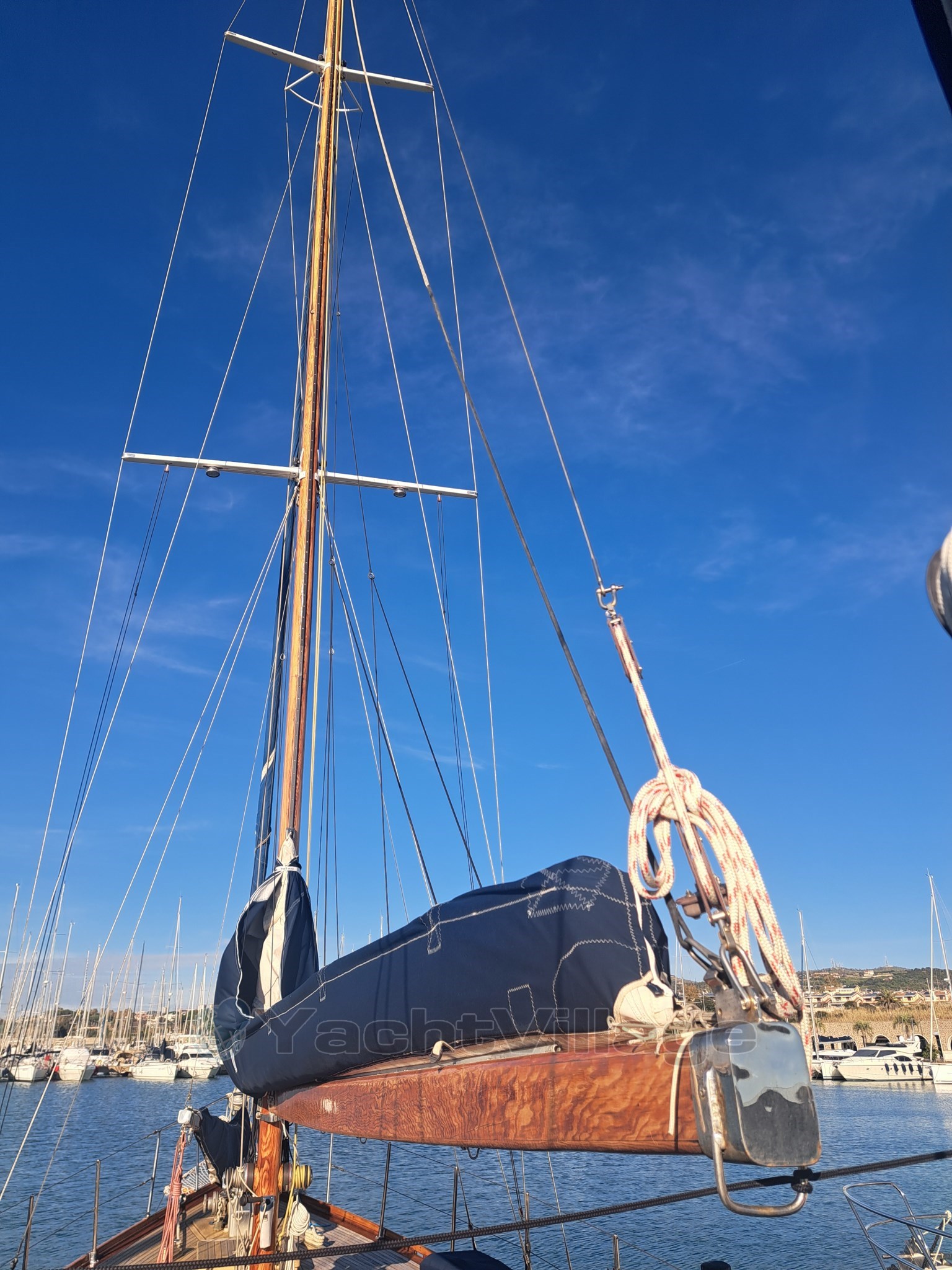 Chantier naval : CIRO MASSA (Torre del Greco) Type : Motorsailer, ketch en bois personnalisé, Année : 1974, Marque du moteur : Caterpillar D9304T, hp 169 Heures moteur : 2,179