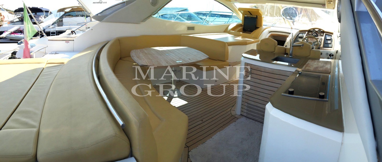 Haut-parleurs, Antenne TV satellite, Climatisation, Barbecue, Chaudière, Climatisation réversible, Coussins complets, Coussins de poupe (neuf 2023), Coussins d’étrave (neuf 2021), Coussins de cockpit, Réfrigérateur externe, Réfrigérateur interne, Système TV, Onduleur, Micro-ondes (combiné), Plancher intérieur en bois, Plaque électrique (4 feux à induction internes, 2 externes), Prises internes 12v, Prises internes 220v, Radio AM/FM, Stéréo (nouveau 2022), 4 TV, Chargeur de batterie, Douche extérieure (avant et poupe), Garage à annexe, Hard top, Évier dans le cockpit, Passerelle (électro-hydraulique), Plate-forme, Cockpit en teck, Prise de quai 220V, Prise d’eau de quai, Guindeau électrique, Echelle de bain (électrique escamotable), Table de cockpit, Annexe ( Lobster Mt2.20 + Fb2,5 Hp), Klaxon