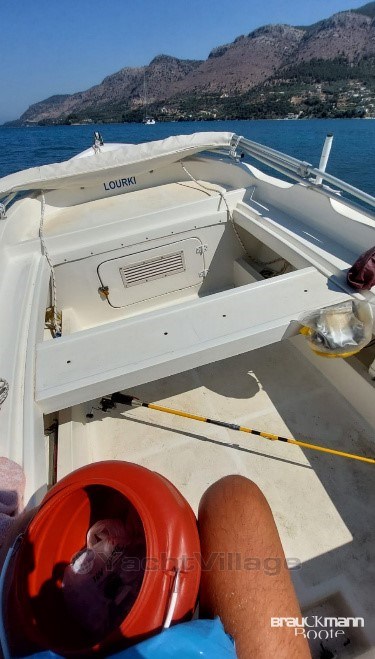 Electric starter, tiller control, 20 operating hours, antifouling new, 5x primed, fishfinder depth sounder, control cabinet with main battery switch,